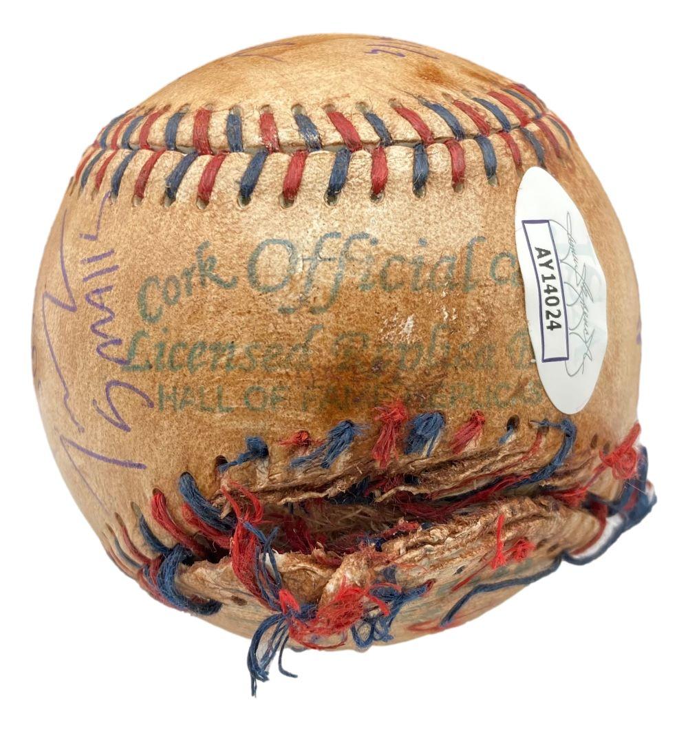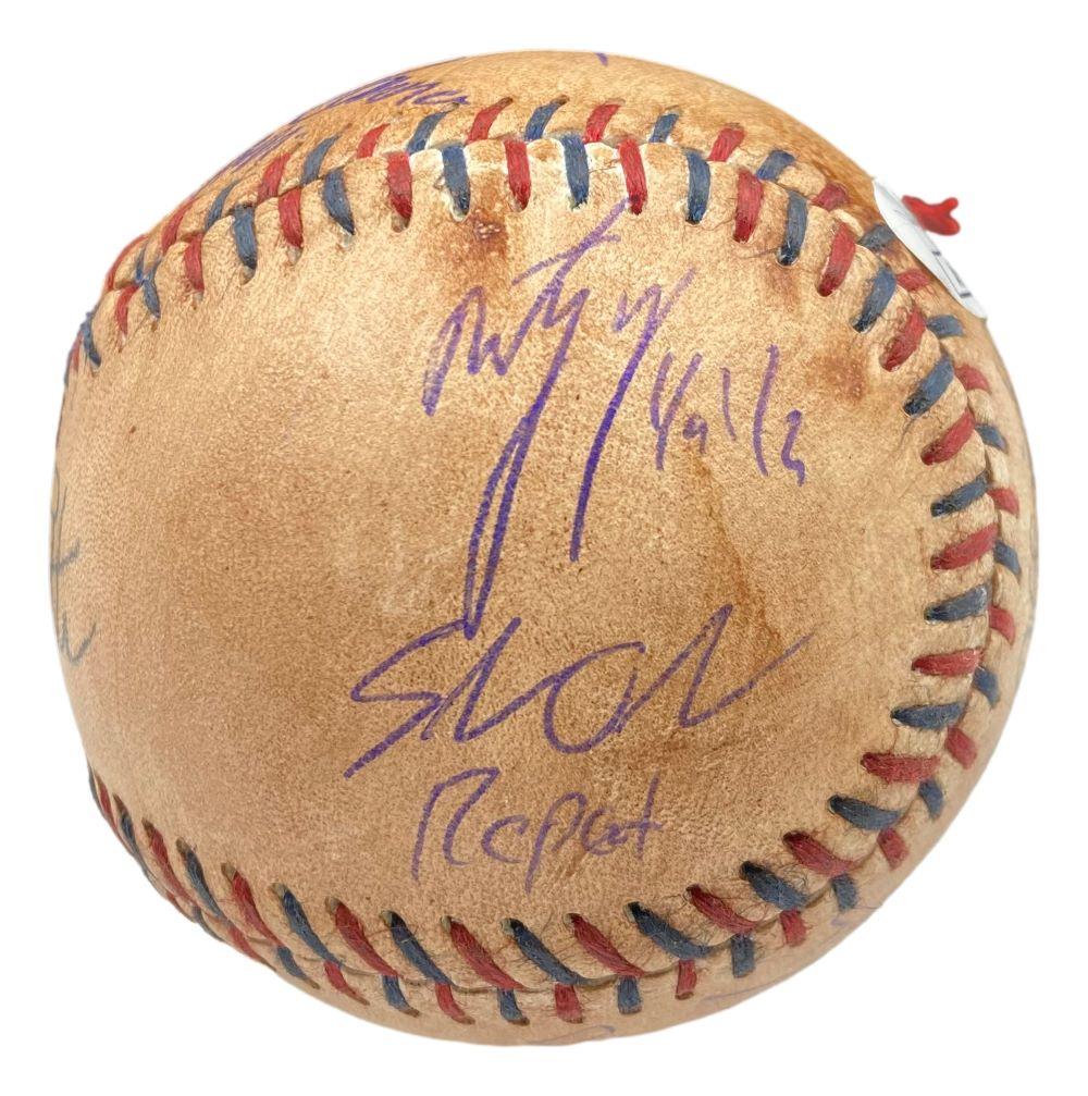 Baseball has been hand-signed by (8) including Patrick Renna, Grant Gelt, Chauncy Leopardi, Tom Guiry, Shane Obedzinski, Victor DiMattia, Marty York and Brandon Adams. Please note, the Ruth signature is a facsimile.