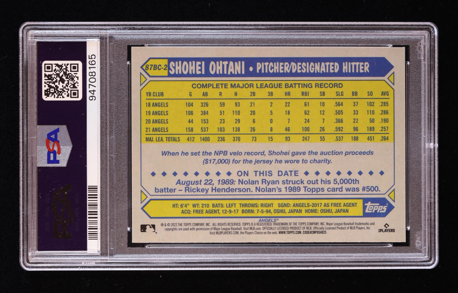 Shohei Ohtani 2022 Topps Chrome '87 Topps #87BC2 (PSA 10)