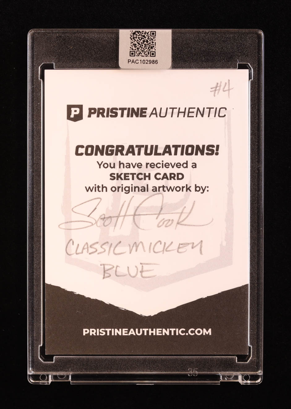 This original sketch card includes original art by award winning Walt Disney artist, Scott Cook. The card is hand-signed along with a character name inscription on the back by the artist.