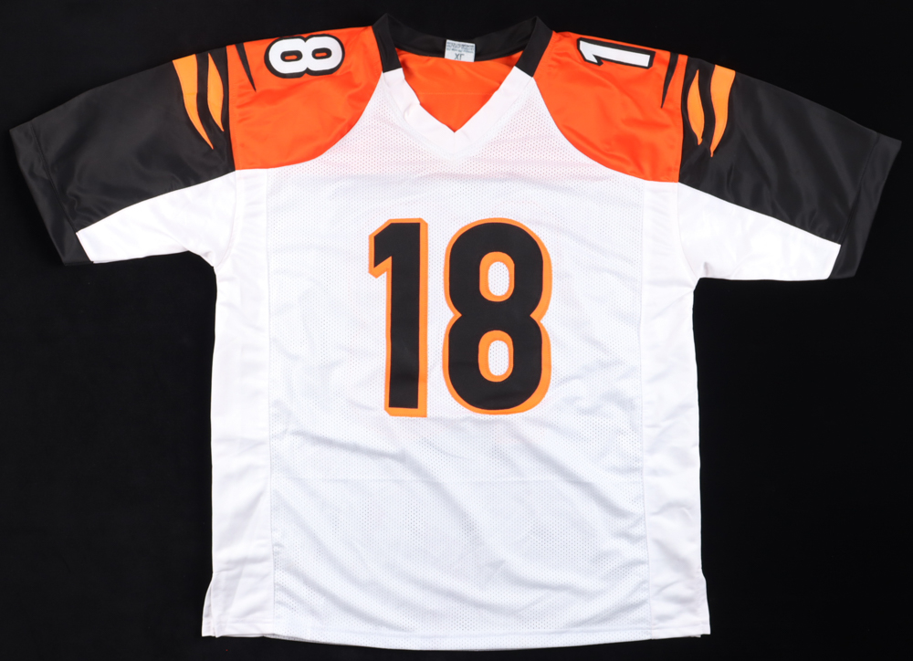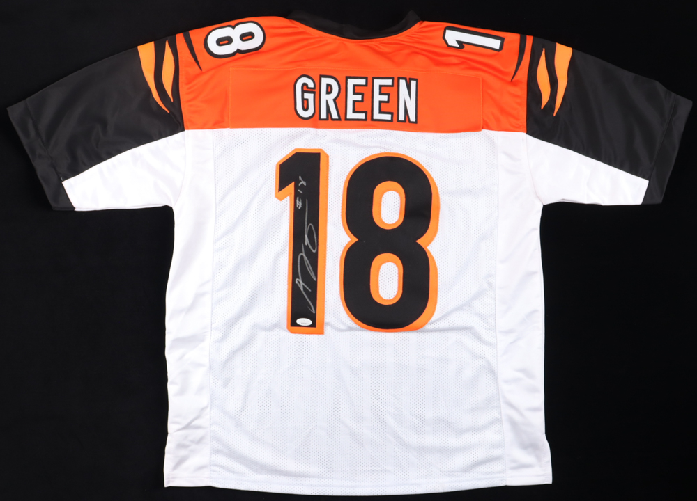 Custom jersey with everything sewn on, size XL. Hand-signed by A. J. Green.