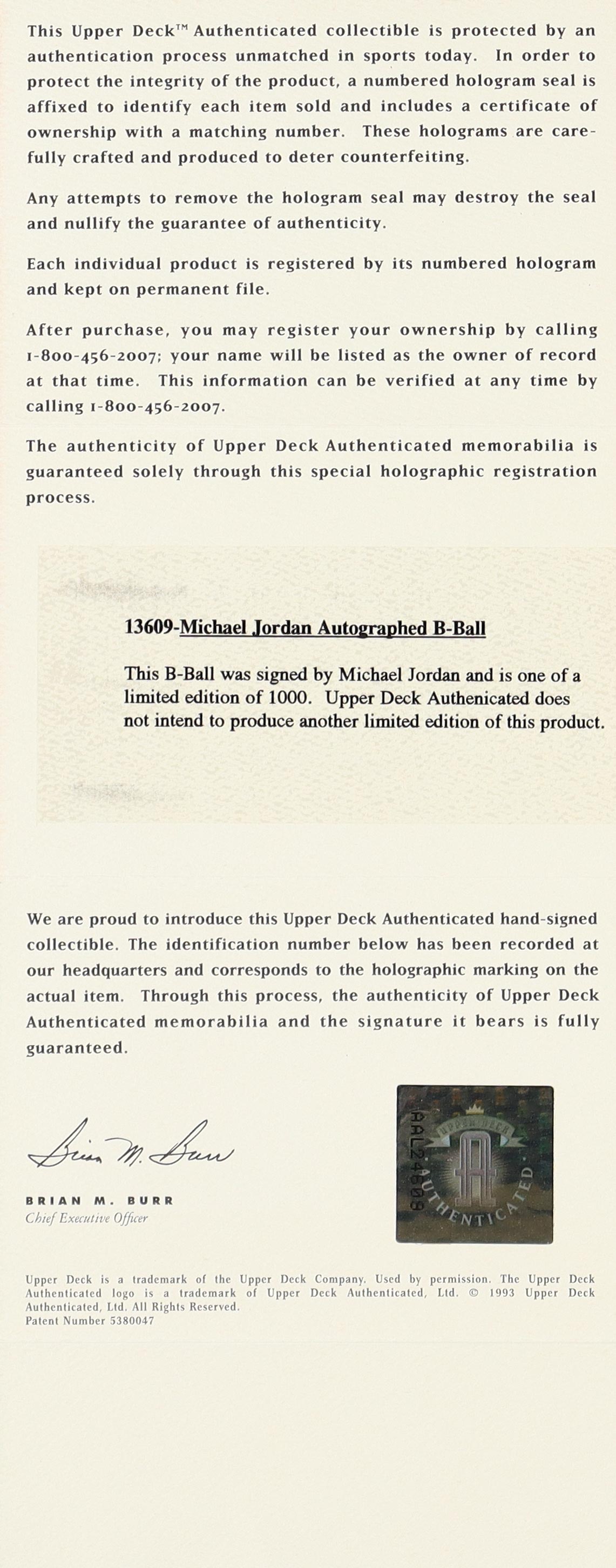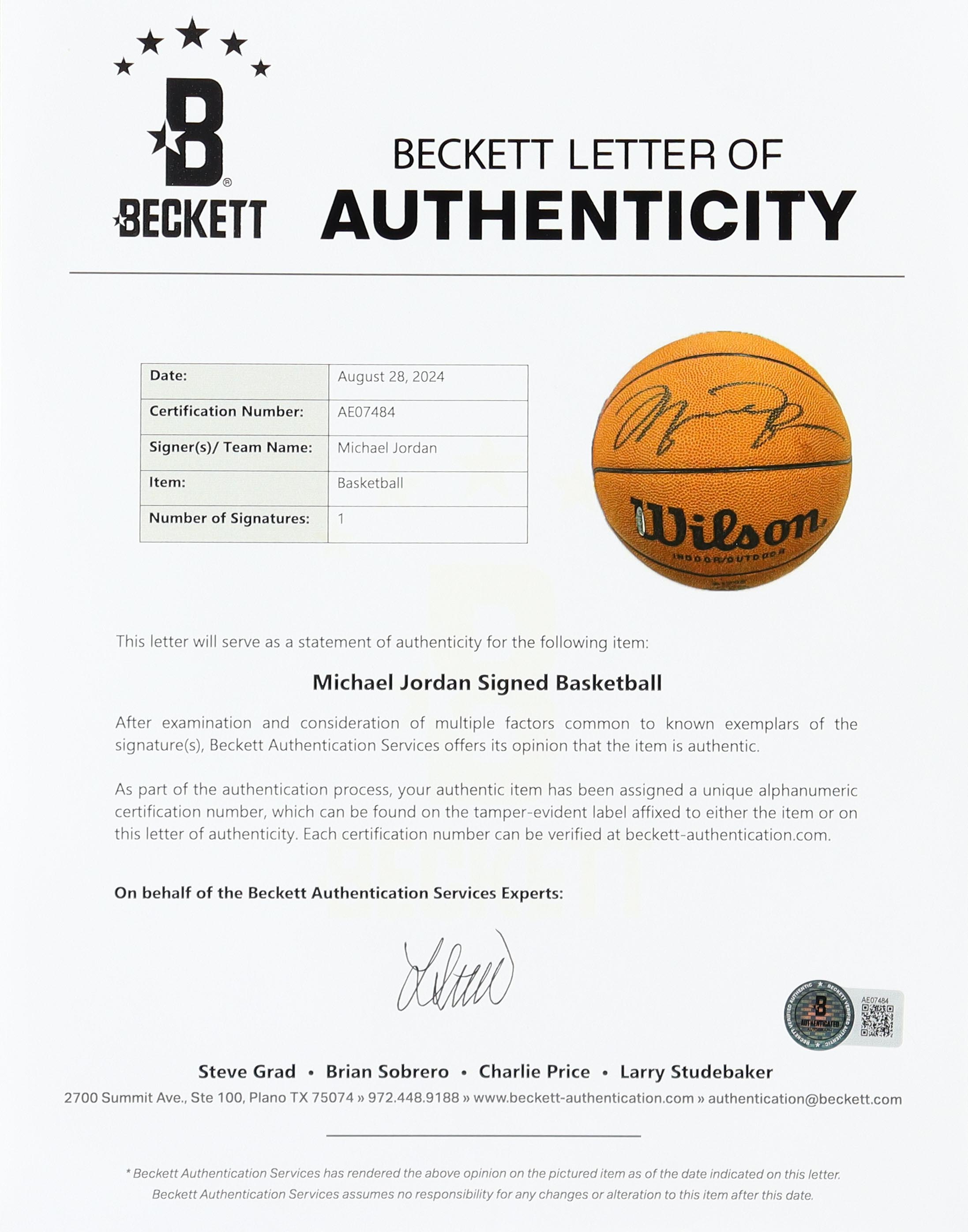 Jordan’s signature on this basketball is a bold, dark display of his iconic autograph, beautifully preserved and capturing his legacy with striking clarity. The authentication on this piece is as prestigious as it gets, with a total of two LOAs from both Beckett and PSA in addition to the Upper Deck Authenticated (UDA) COA. This level of comprehensive certification assures buyers of the authenticity and rarity of this basketball, distinguishing it as one of the finest Michael Jordan collectibles available.
