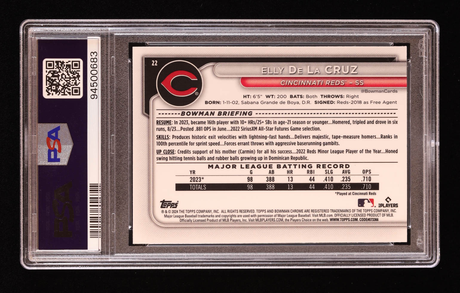 Elly De La Cruz 2024 Bowman Chrome Mega Box Blue Refractor #22 RC #40/150 (PSA 10)