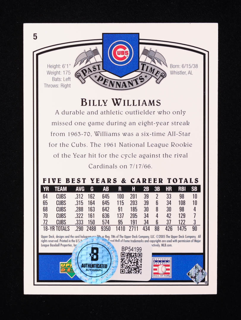 Billy Williams Signed 2005 UD Past Time Pennants #5 (Beckett)