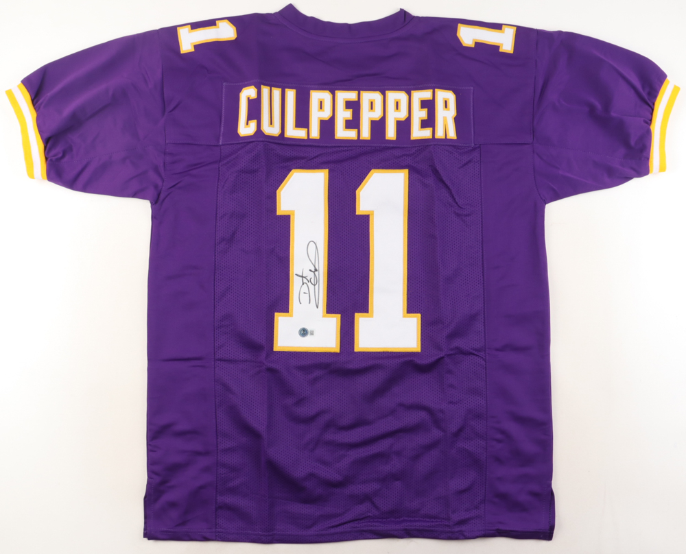 Custom jersey with everything sewn on, size XL. Hand-signed by Daunte Culpepper.