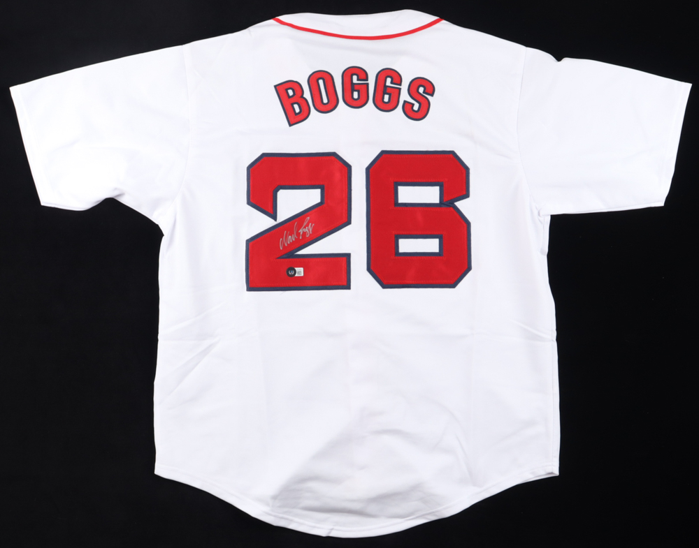 Custom jersey with everything sewn on, size XL. Hand-signed by Wade Boggs (HOF).