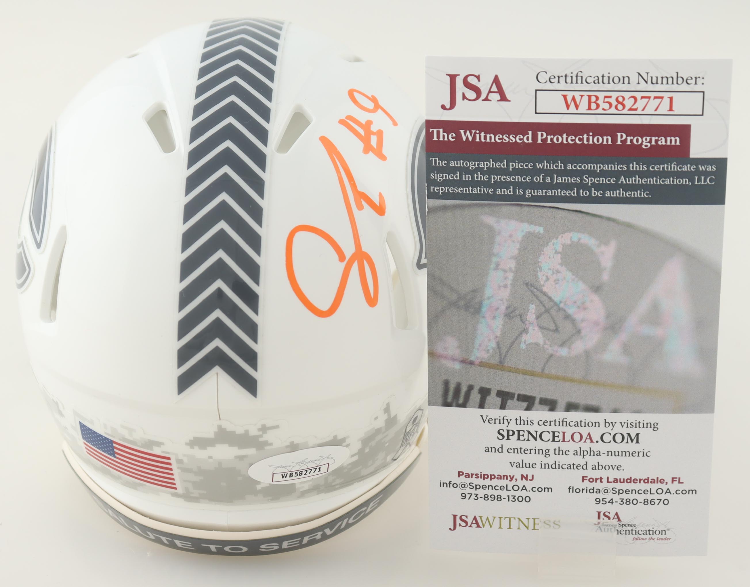 Riddell Chicago Bears Salute To Service Alternate Speed mini helmet. Hand-signed by Jaquan Brisker.