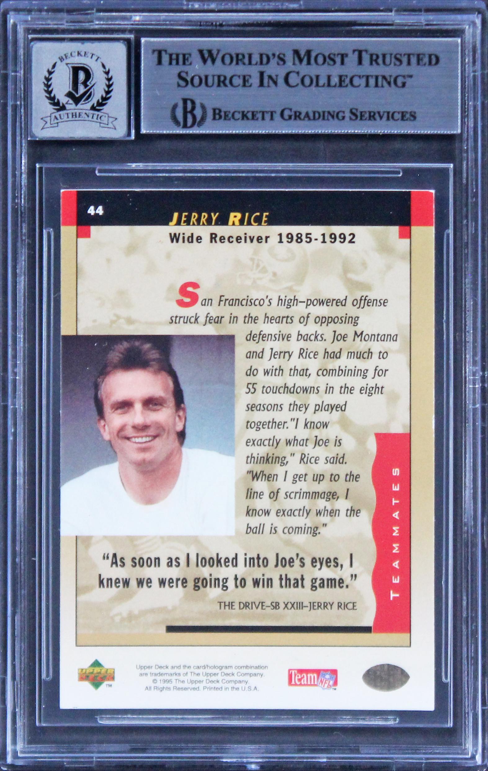 Jerry Rice & Joe Montana Signed 1995 Upper Deck Joe Montana Box Set #44 (BGS | Autograph Graded 10)
