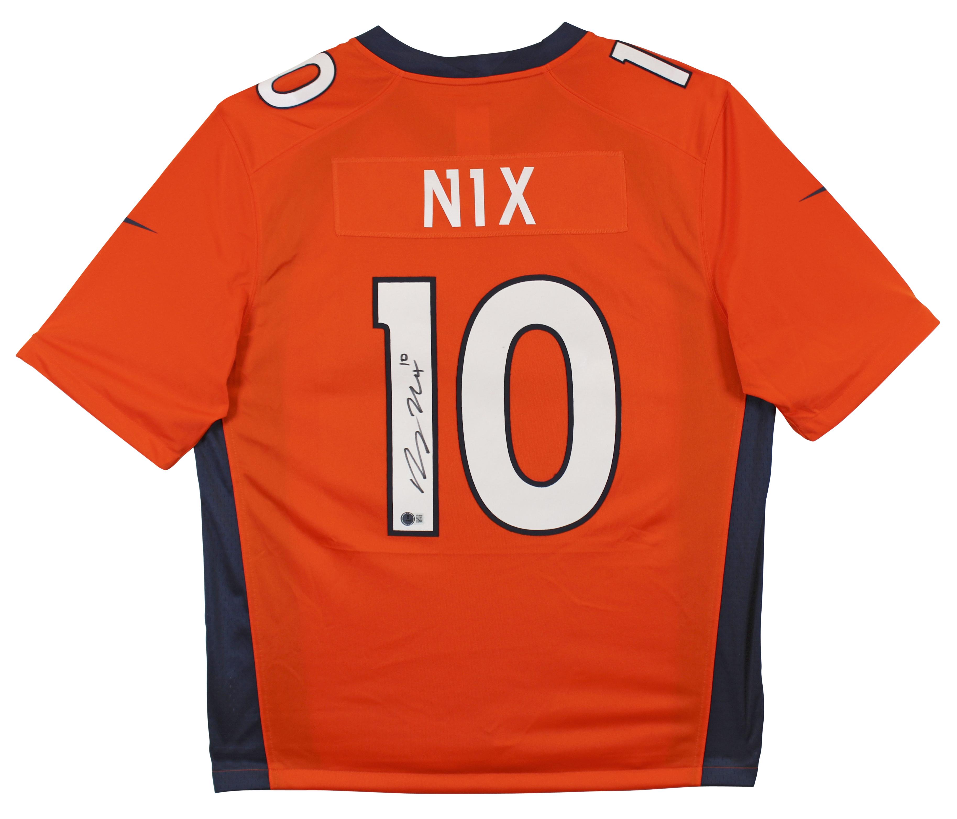 Nike Limited style jersey with everything sewn on, size XL. Hand-signed by Bo Nix (Denver Broncos).