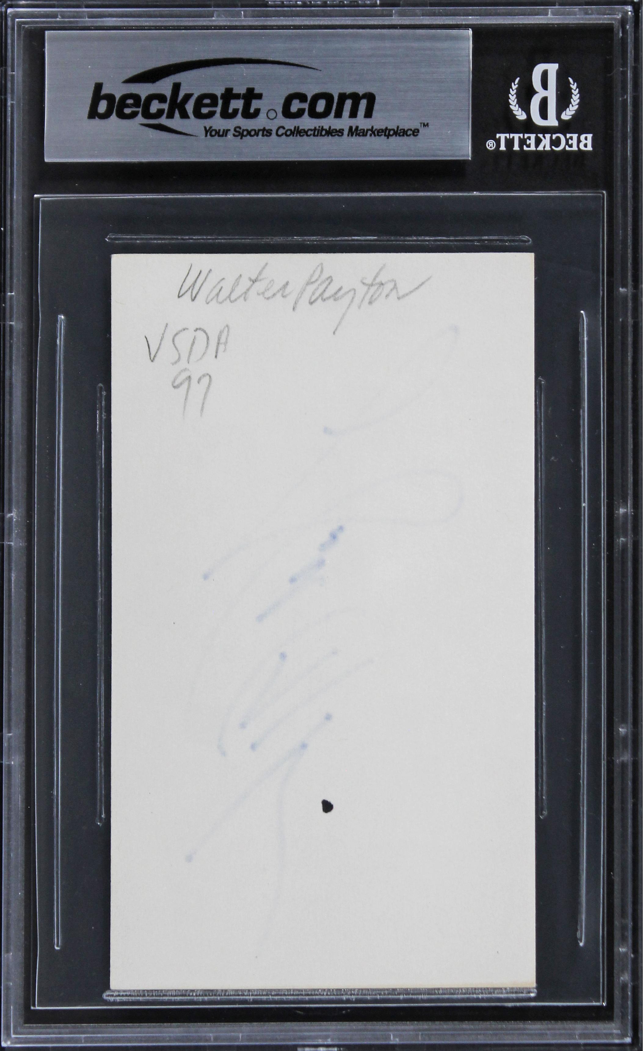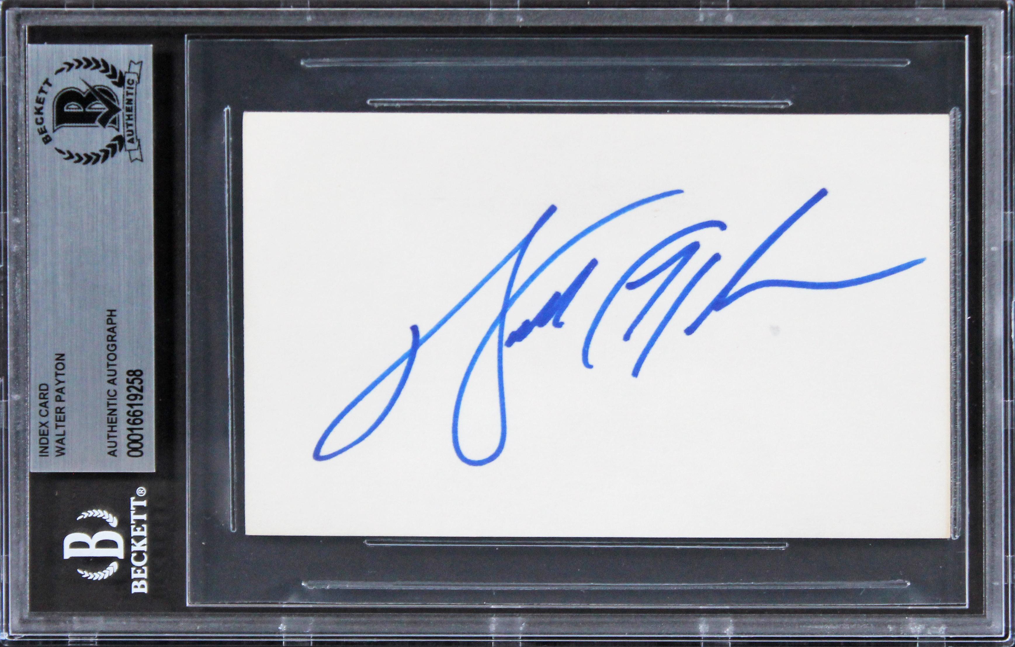 Index Card measures 3” x 5” in size and has been hand-signed by Walter Payton (D. 1999, Chicago Bears, HOF).