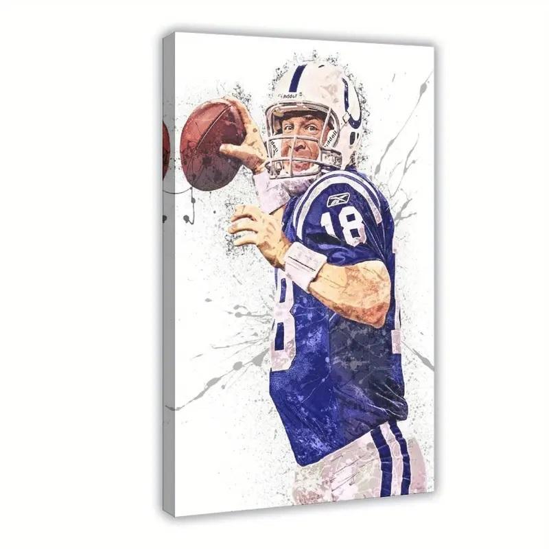 Image printed on canvas measures 16" x 24" in size and features Peyton Manning (Indianapolis Colts). Please note, this item is unsigned. Image is printed on quality canvas and finished with protective coating to prevent exterior damage.