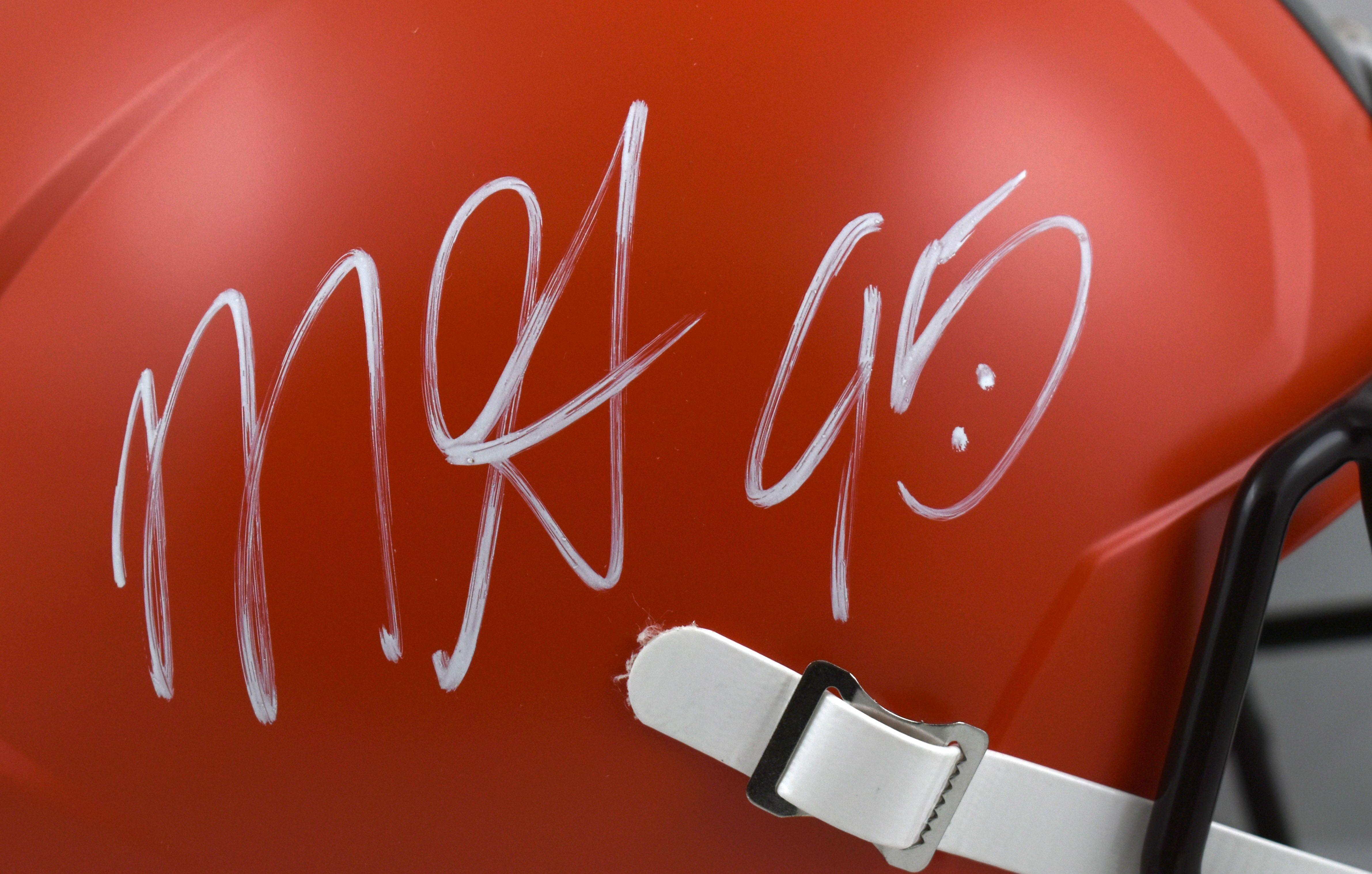 Riddell Cleveland Browns full-size Speed helmet has been hand-signed by Myles Garrett.