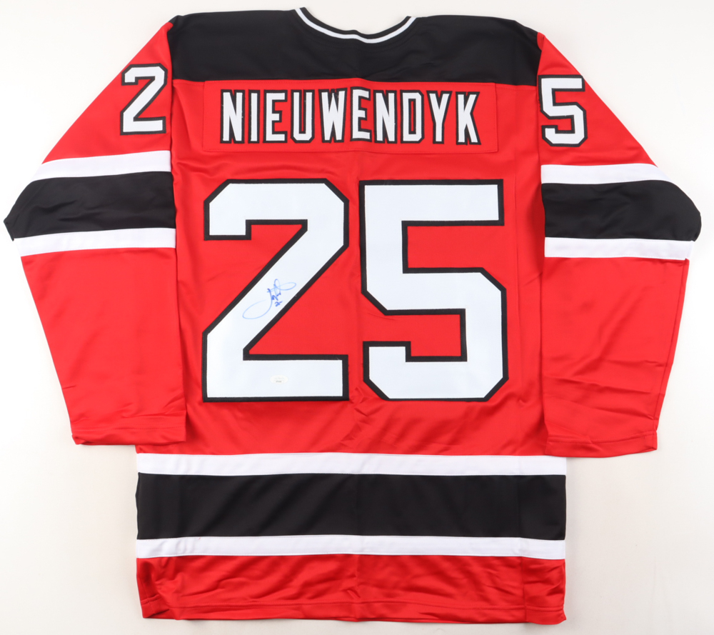 Custom jersey with everything sewn on, size XL. Hand-signed by Joe Nieuwendyk.