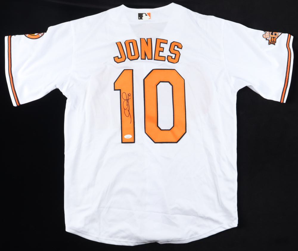 Majestic jersey. Everything is sewn on, size XL. Hand-signed Adam Jones (Baltimore Orioles).