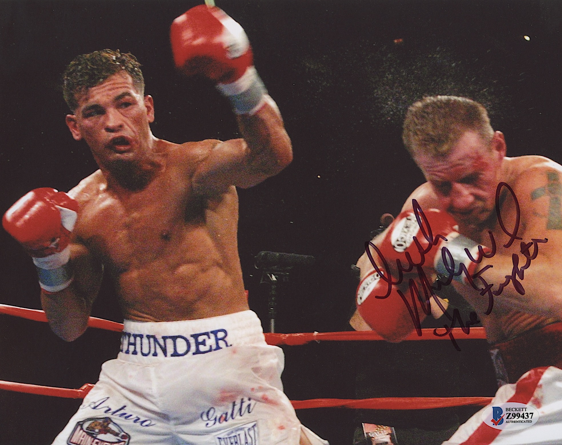 Photo measures 8" x 10" in size and has been hand-signed by "Irish" Micky Ward.