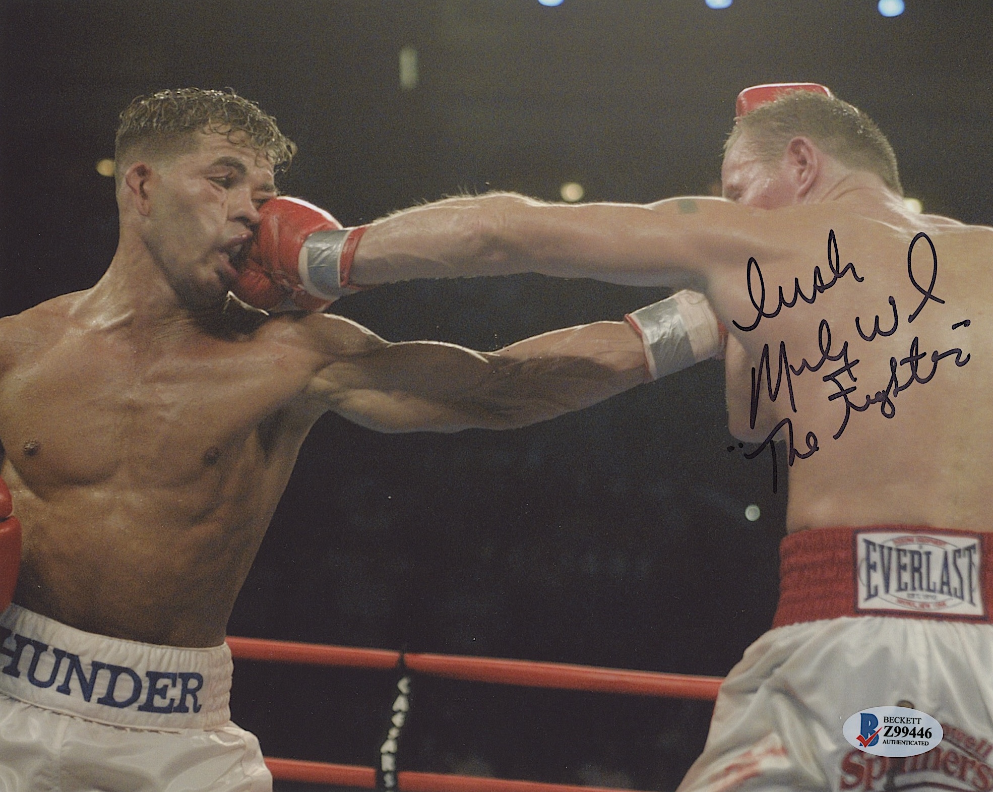 Photo measures 8" x 10" in size and has been hand-signed by "Irish" Micky Ward.