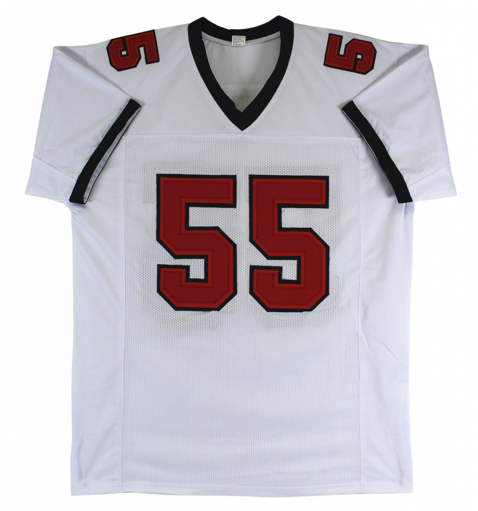Custom jersey with everything sewn on, size XL. Hand-signed by Derrick Brooks (HOF).