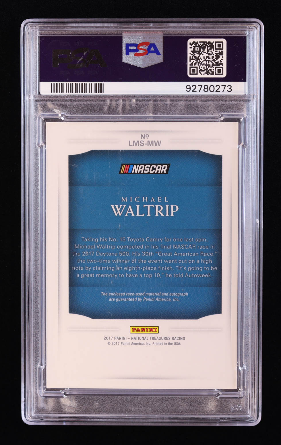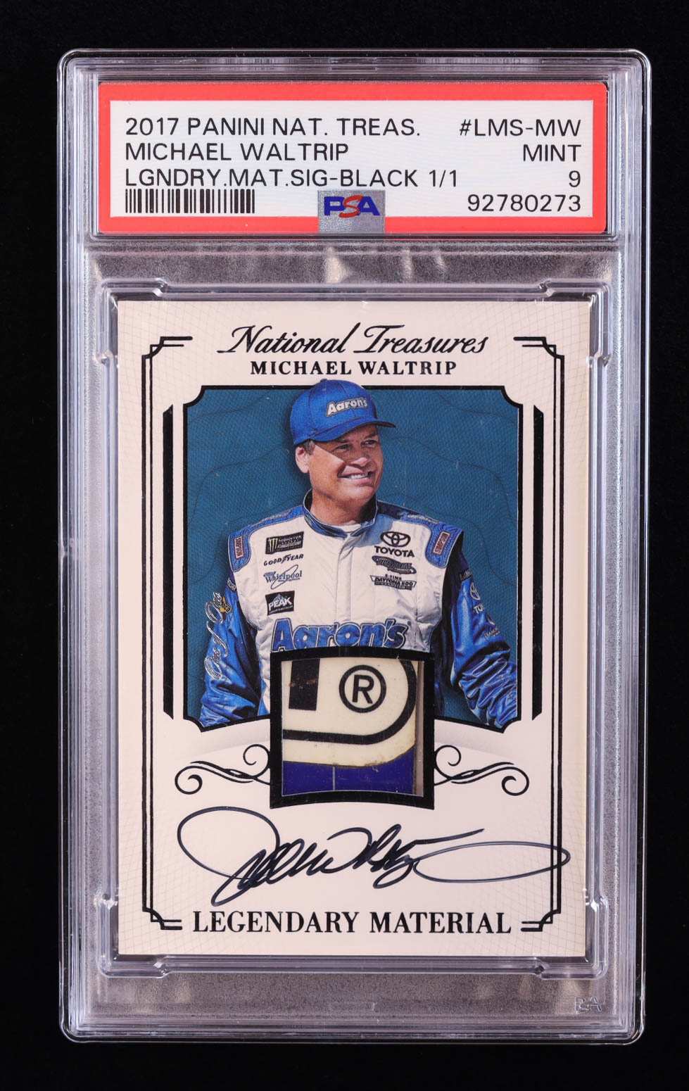 Michael Waltrip 2017 Panini National Treasures Legendary Material Signatures Black #9 #1/1 (PSA 9)