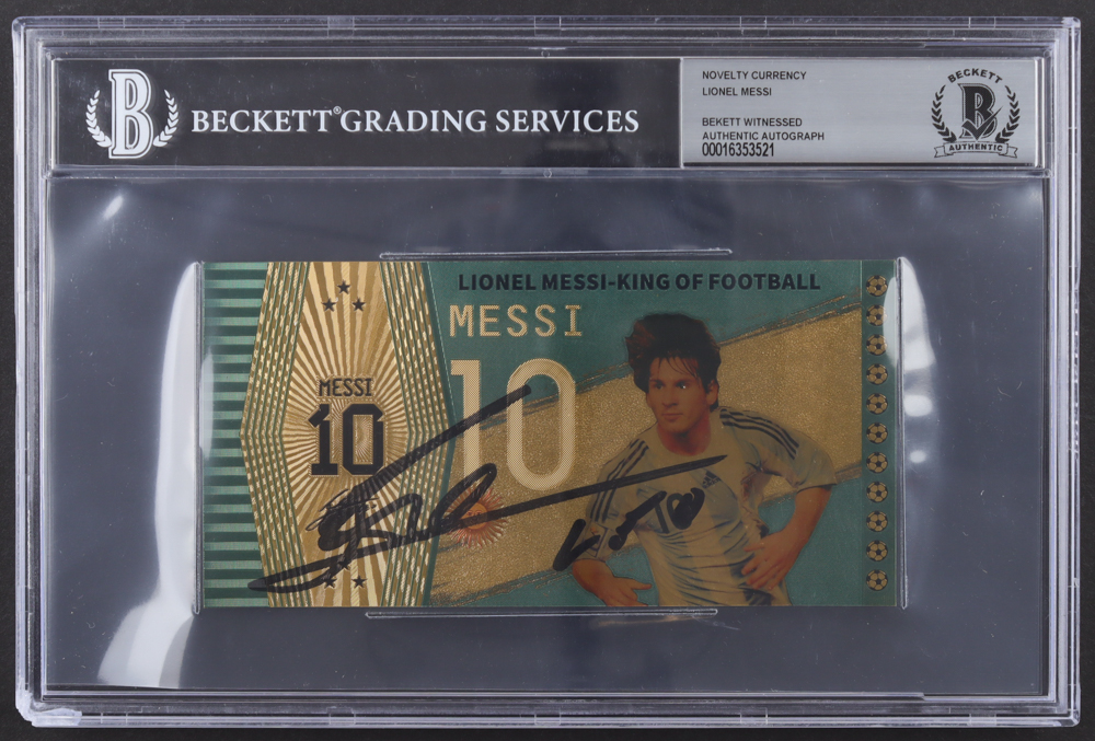 Novelty currency has been hand-signed by Lionel Messi (Team Argentina).