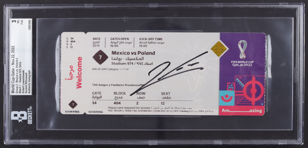 Robert Lewandowski Signed 2022 World Cup Qatar Poland vs. Mexico Full Ticket (BGS 3)