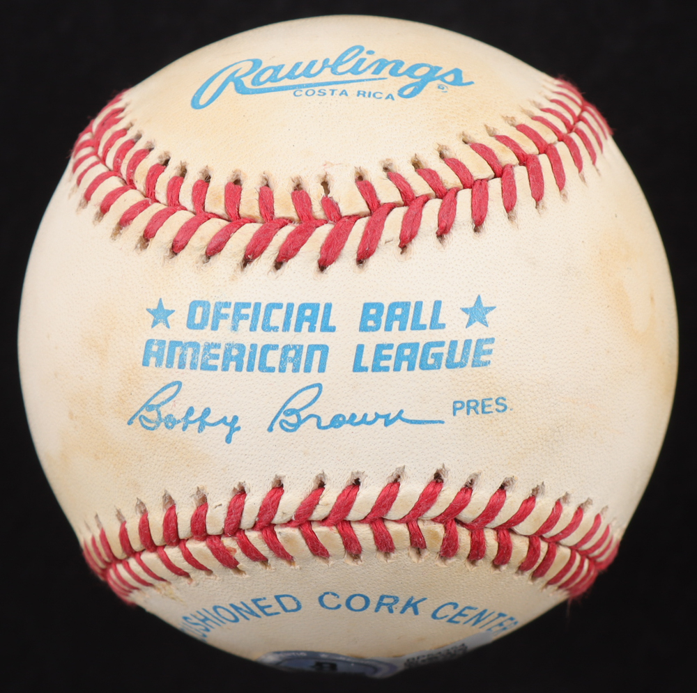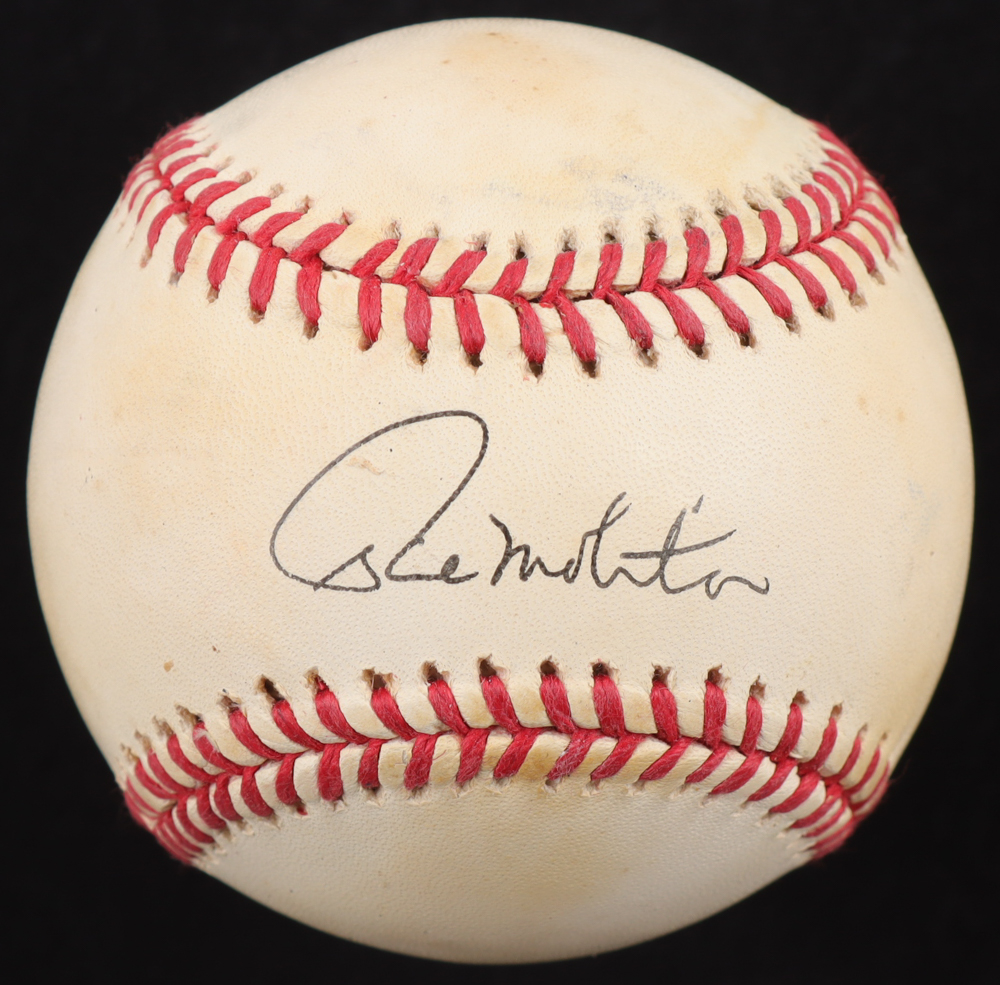 Rawlings Official American League Baseball. Hand-signed and inscribed by Paul Molitor (Milwaukee Brewers, HOF). Please note, the baseball is naturally toned and stained.