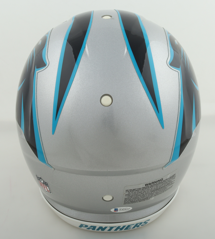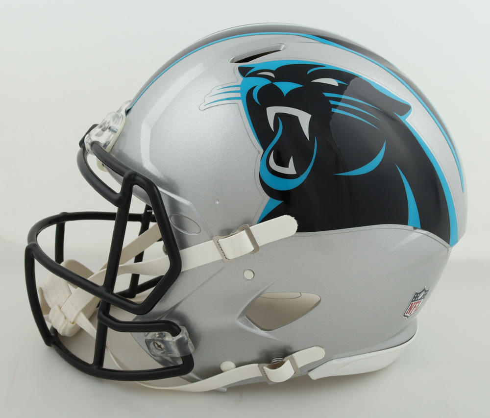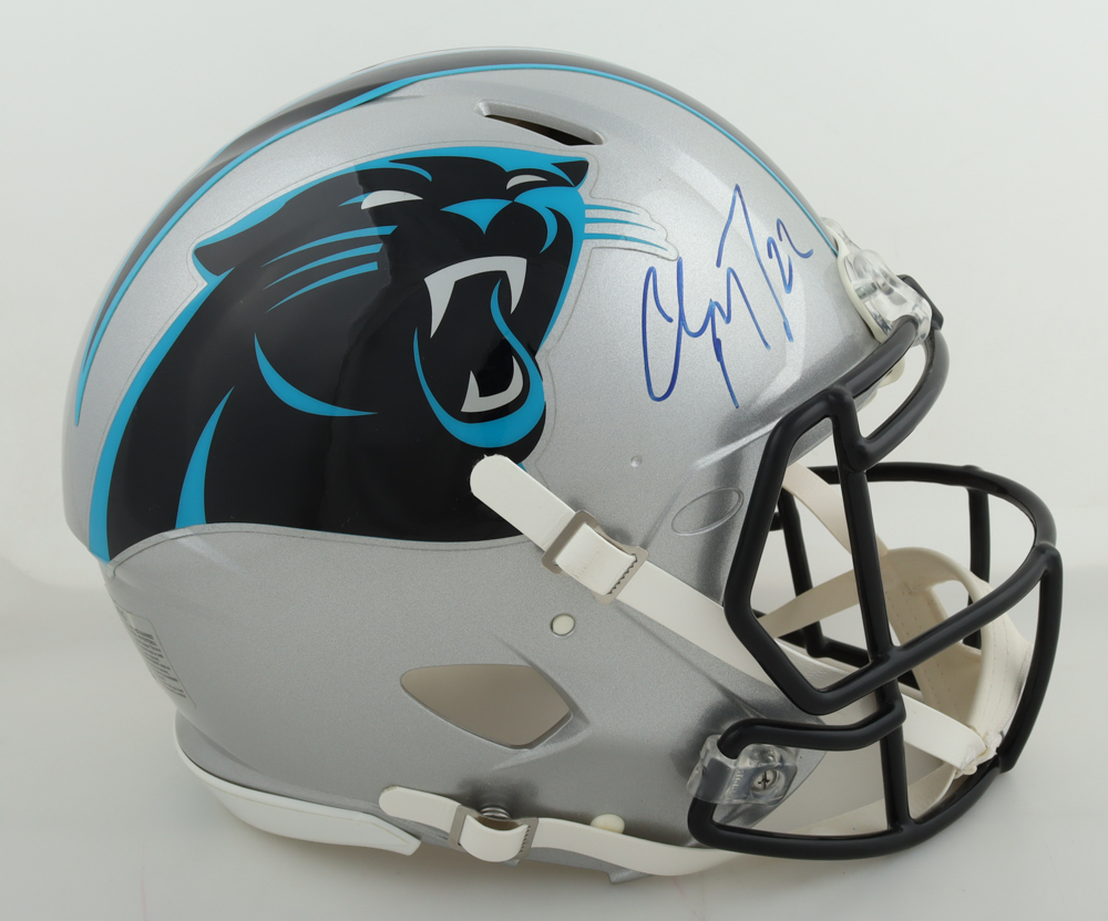 Riddell Carolina Panthers Full-Size Authentic On-Field Speed helmet. Hand-signed by Christian McCaffrey.