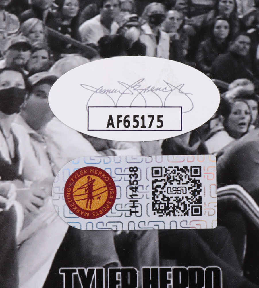 Photo measures 16" x 20" in size and has been hand-signed by Tyler Herro (Miami Heat).