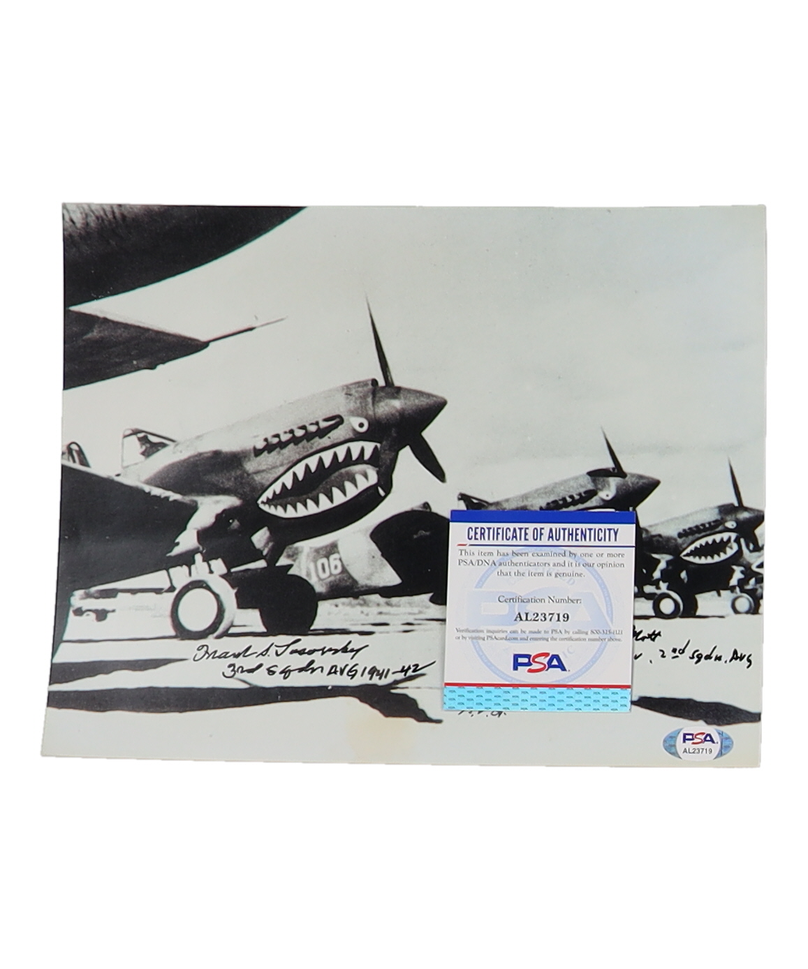 WWII AVG Flying Tigers Signed 8x10 (PSA) Tex Hill, Charlie Mott, Frank Losonsky