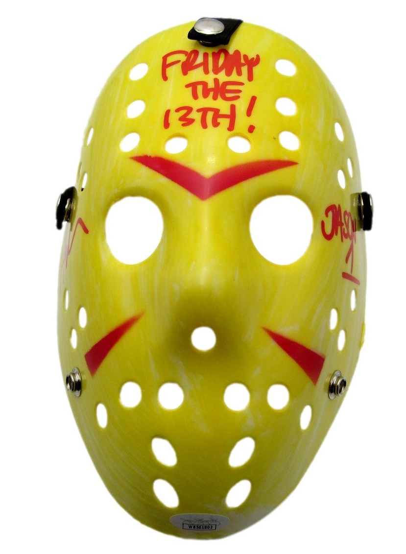 Custom "Friday the 13th" Jason Voorhees full-size replica mask. Hand-signed and inscribed by Ari Lehman (Jason Voorhees).