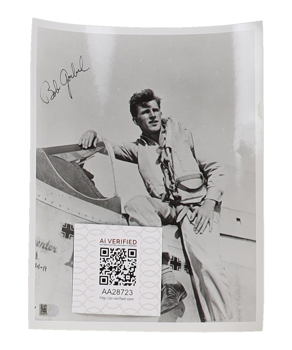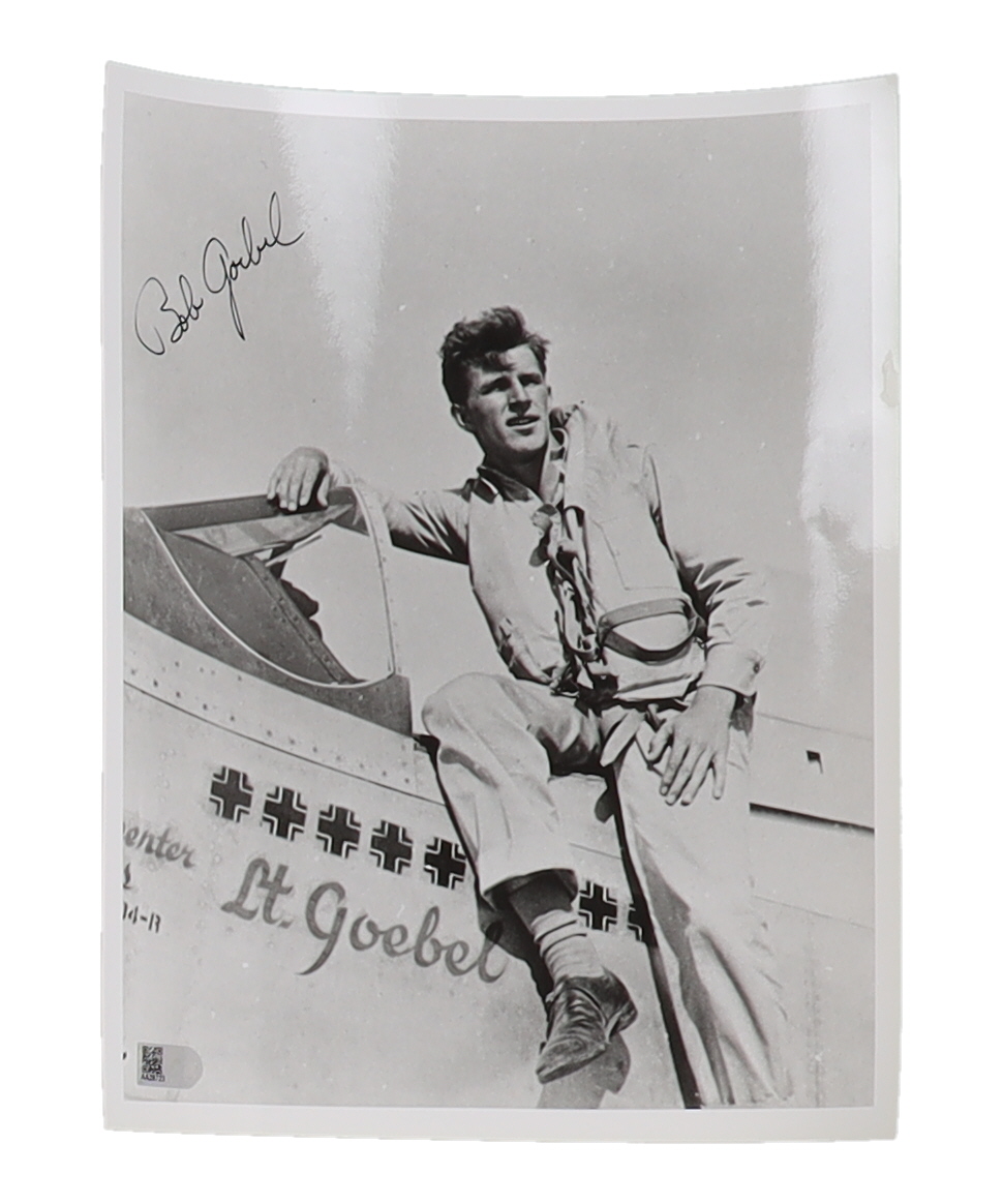 "Presented for auction is a hand-signed 8x10 photograph autographed by **Robert Goebel**, a distinguished WWII ace pilot who served with the **31st Fighter Group**. Goebel is recognized for his impressive combat record, achieving **11 aerial victories** during his service in the European Theatre.