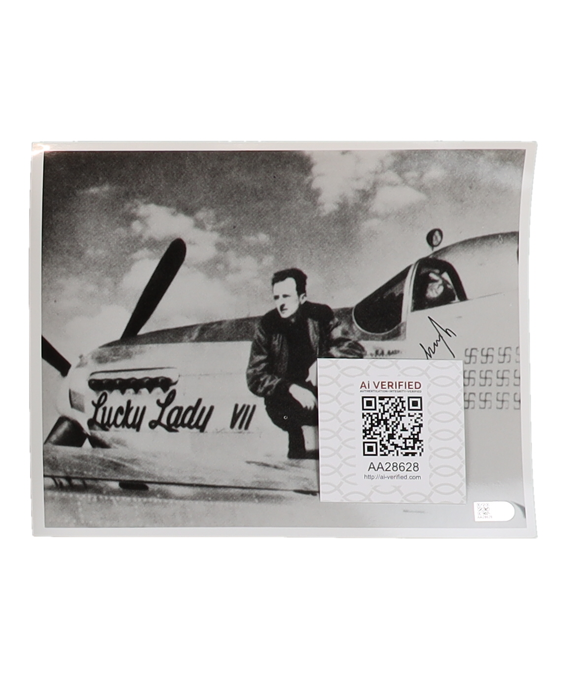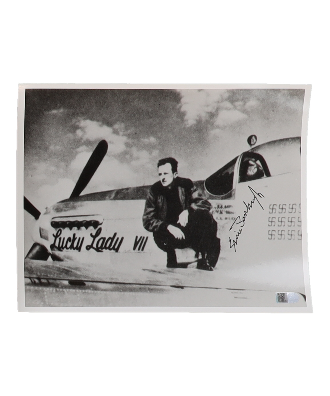 "Now available for auction is a hand-signed 8x10 photograph autographed by **Ernest Bankey**, a distinguished WWII ace pilot who served with the **364th Fighter Group**. Bankey is credited with **9½ aerial victories**, demonstrating his exceptional skill and valor in the skies during pivotal air battles in the European Theatre.