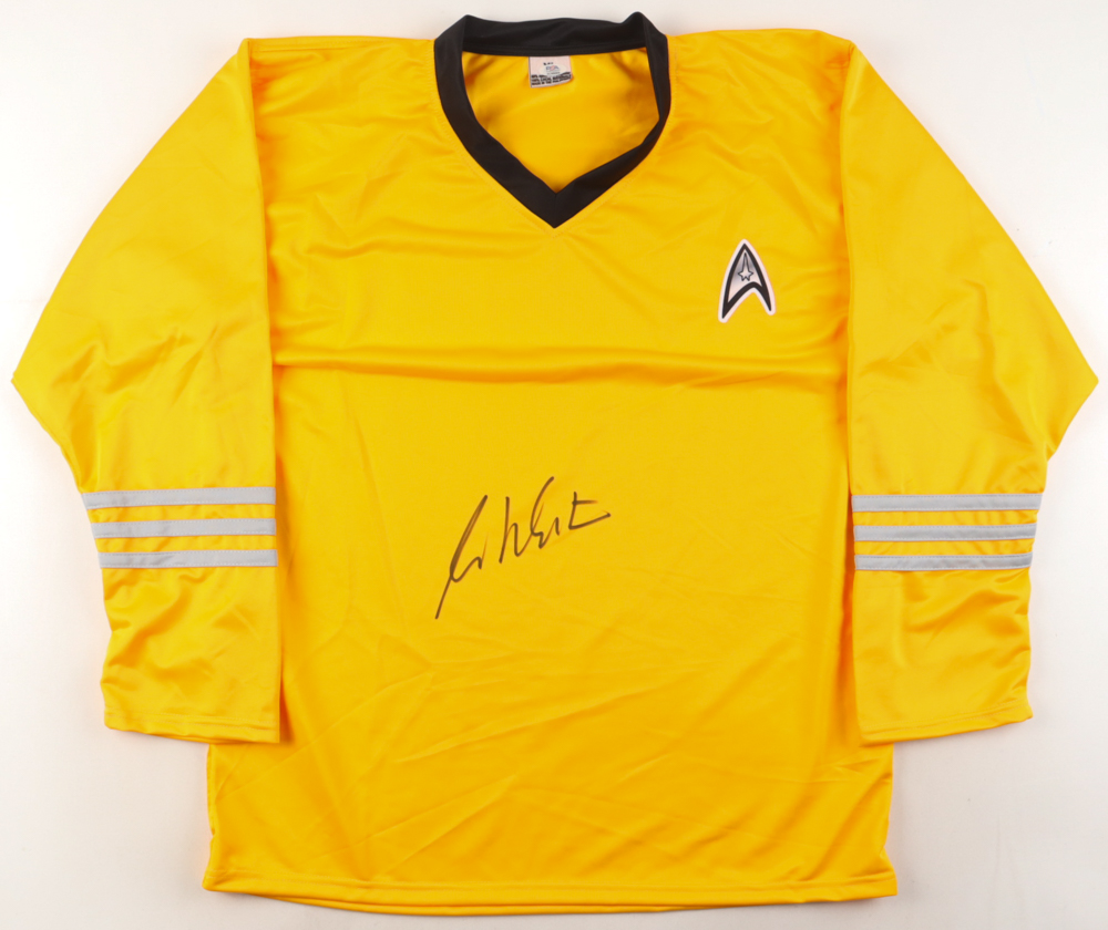 Custom Star Trek uniform shirt. Everything sewn on, size XL. Hand-signed by William Shatner.