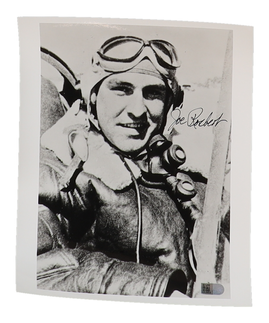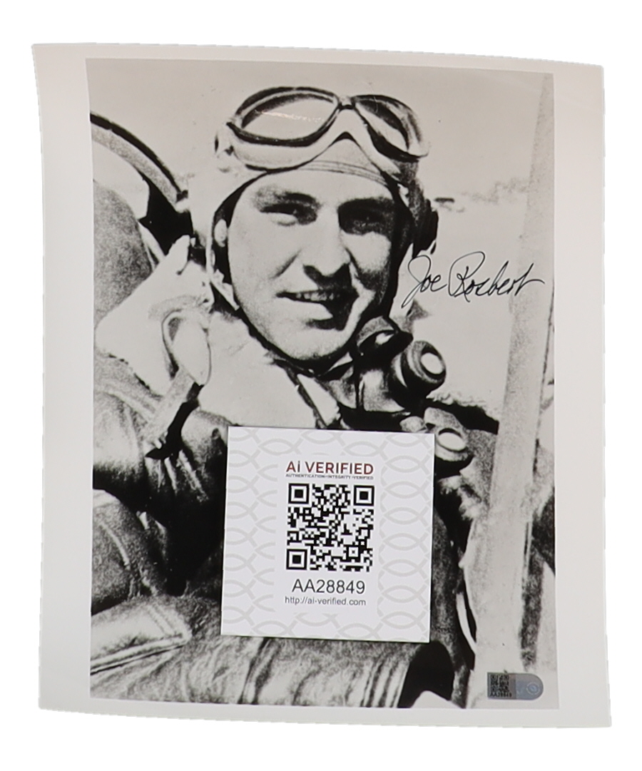 "Up for auction is a hand-signed 8x10 photograph autographed by **Joseph Rosbert**, a distinguished WWII ace who flew the iconic **P-40 Warhawk** as a member of the renowned **American Volunteer Group (AVG),** famously known as the **Flying Tigers**. Rosbert is credited with **6 aerial victories**, showcasing his exceptional skill and bravery during crucial air battles in the Pacific Theatre.