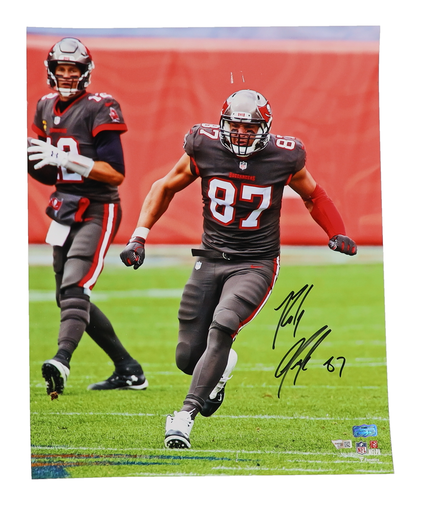 Photo measures 16” x 20” in size and has been hand-signed by Rob Gronkowski (Tampa Bay Buccaneers).