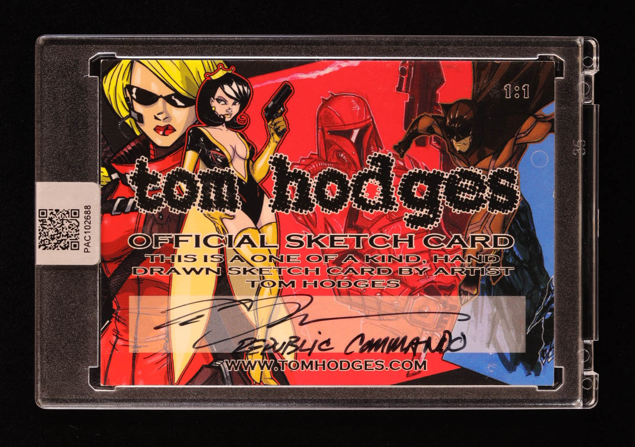 This original sketch card includes original art by renowned comic book artist, Tom Hodges. Also includes a character name inscription on the back by the artist.