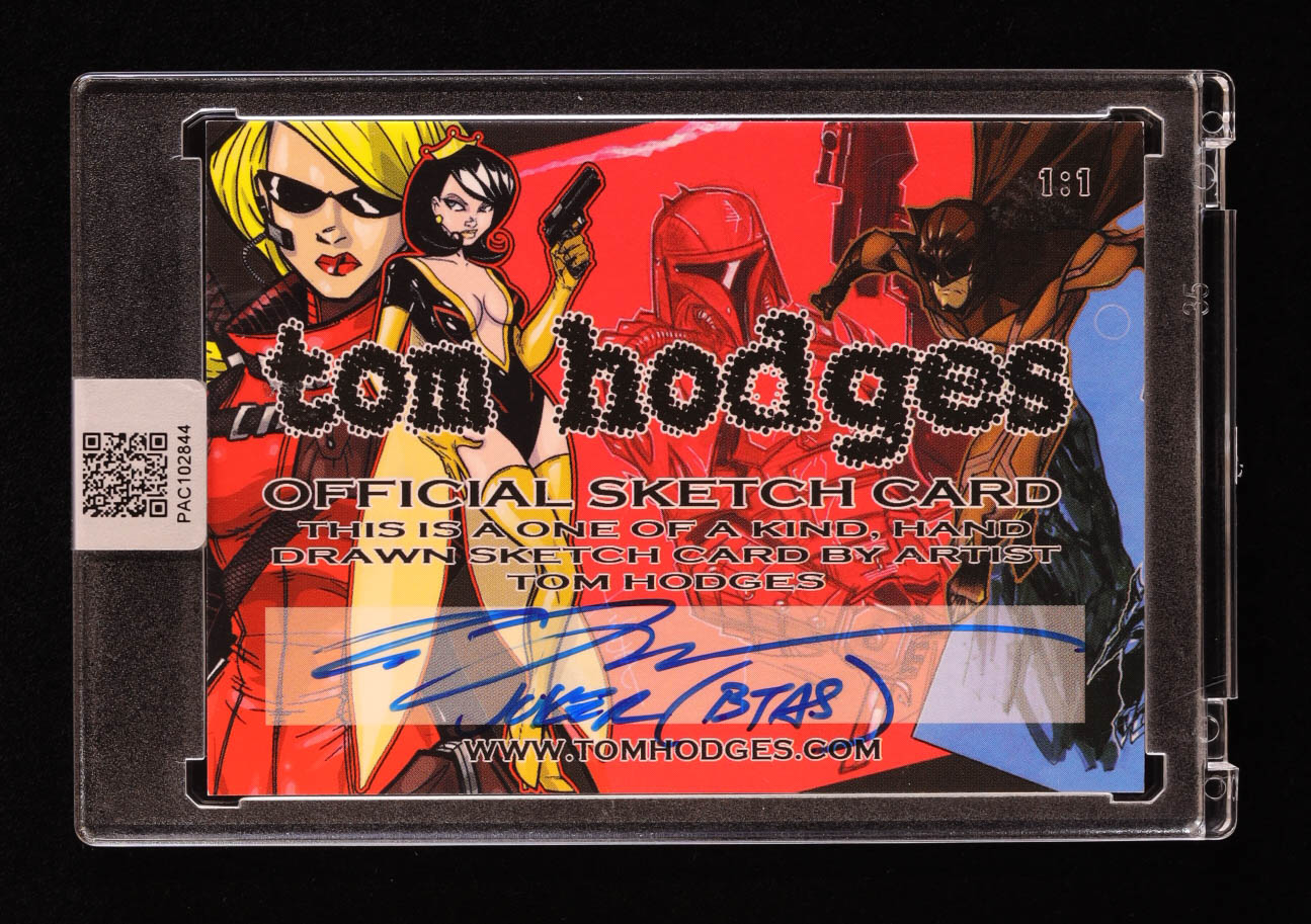 This original sketch card includes original art by renowned comic book artist, Tom Hodges. Also includes a character name inscription on the back by the artist.