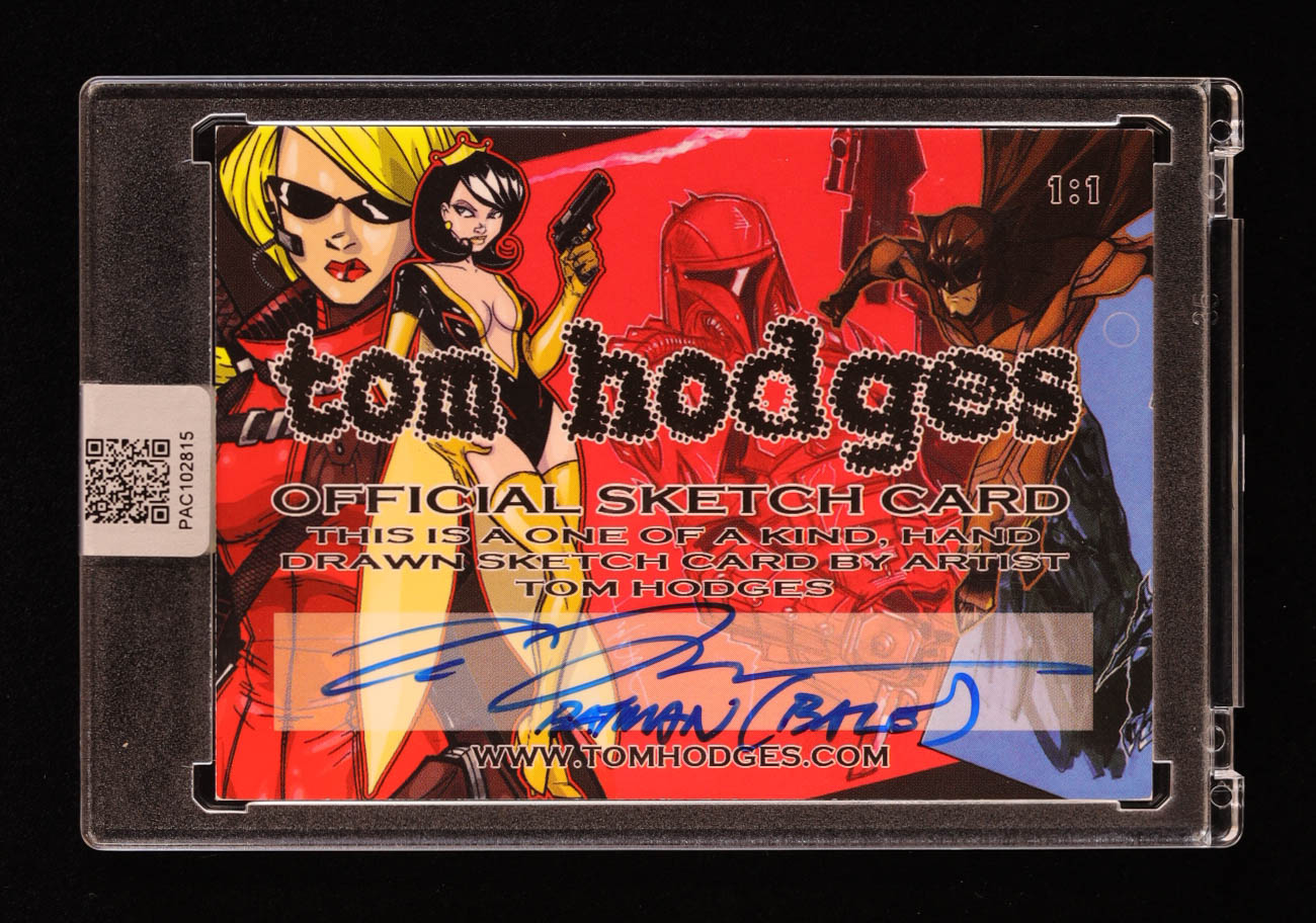 This original sketch card includes original art by renowned comic book artist, Tom Hodges. Also includes a character name inscription on the back by the artist.