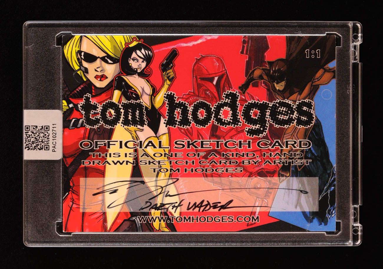 This original sketch card includes original art by renowned comic book artist, Tom Hodges. Also includes a character name inscription on the back by the artist.