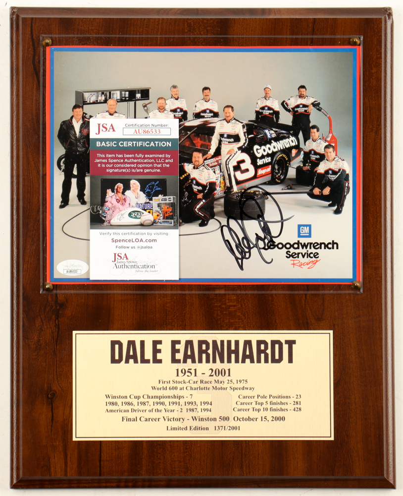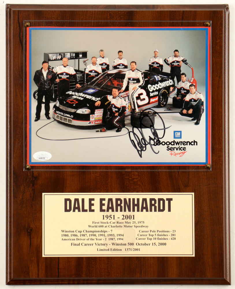 Dale Earnhardt Signed NASCAR Photo Plaque (JSA)