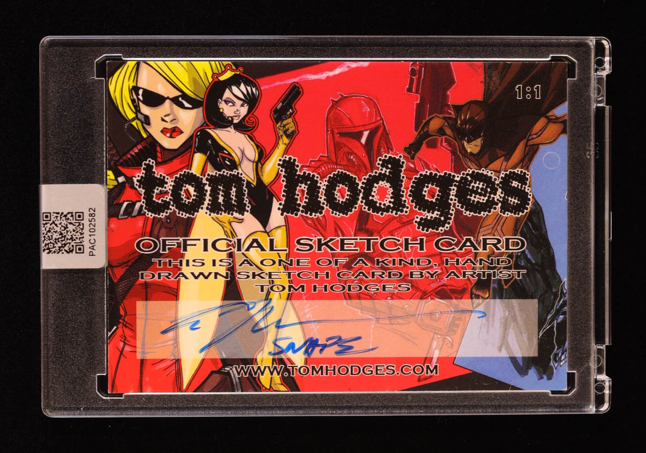 This original sketch card includes original art by renowned comic book artist, Tom Hodges. Also includes a character name inscription on the back by the artist.