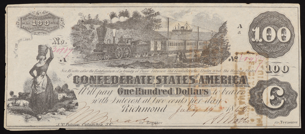 1862 Confederate States of America $100 Banknote