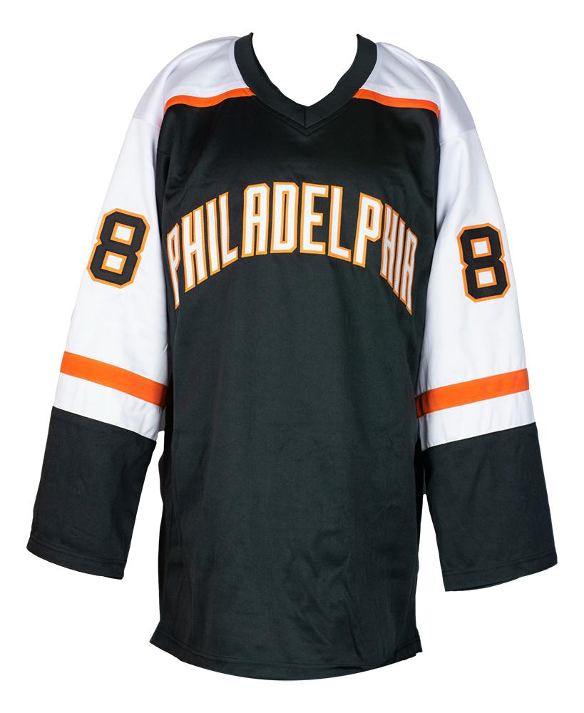 Custom style jersey with everything sewn on, size XL. Hand-signed and inscribed by Eric Lindros (HOF).