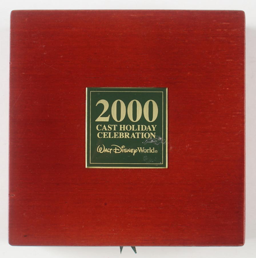 Walt Disney World 2000 Cast Holiday Celebration Set of (5) Pins with Wooden Box Display Case