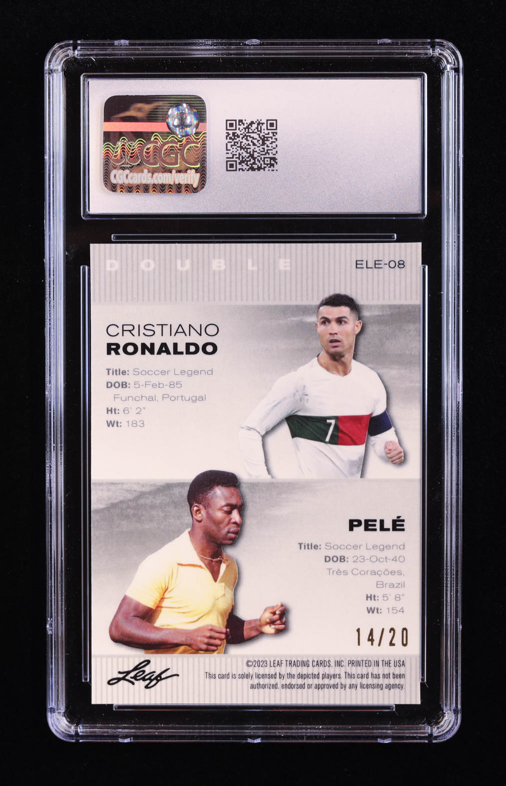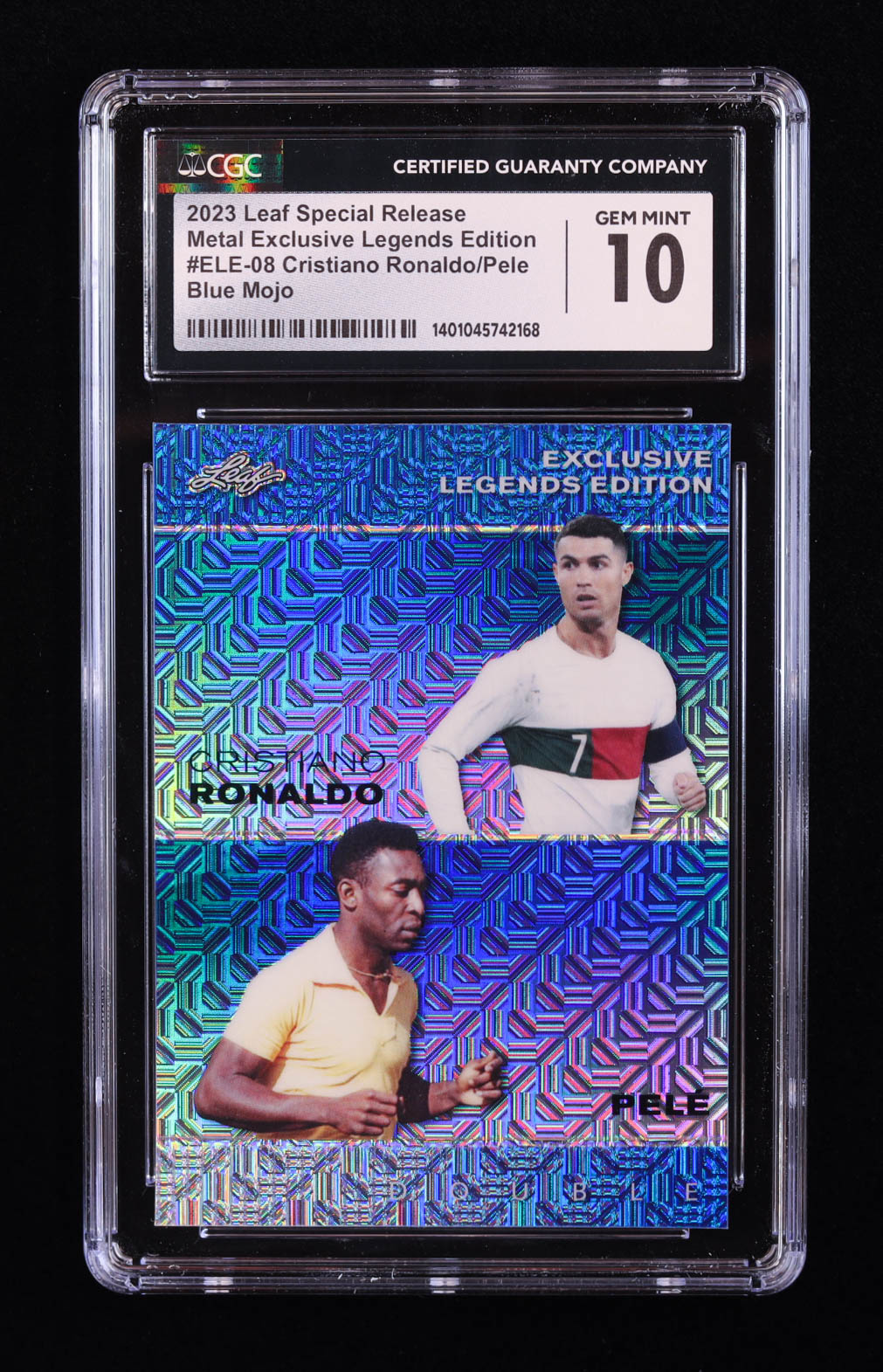 Cristiano Ronaldo / Pele 2023 Leaf Metal Special Release Exclusive Legends Edition Mojo Blue #ELE08 #14/20 (CGC 10)