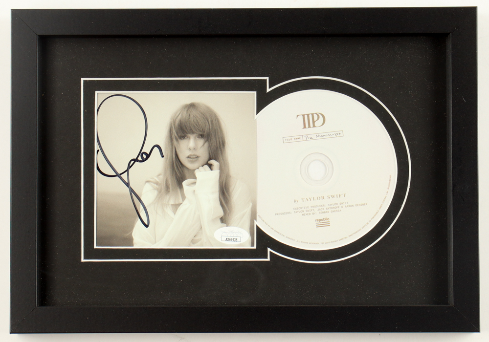 Custom frame measures approximately 9.25" x 13" in size. Features a "The Torture Poets Department" CD insert that has been hand-signed by Taylor Swift. The display also includes the disc as shown.