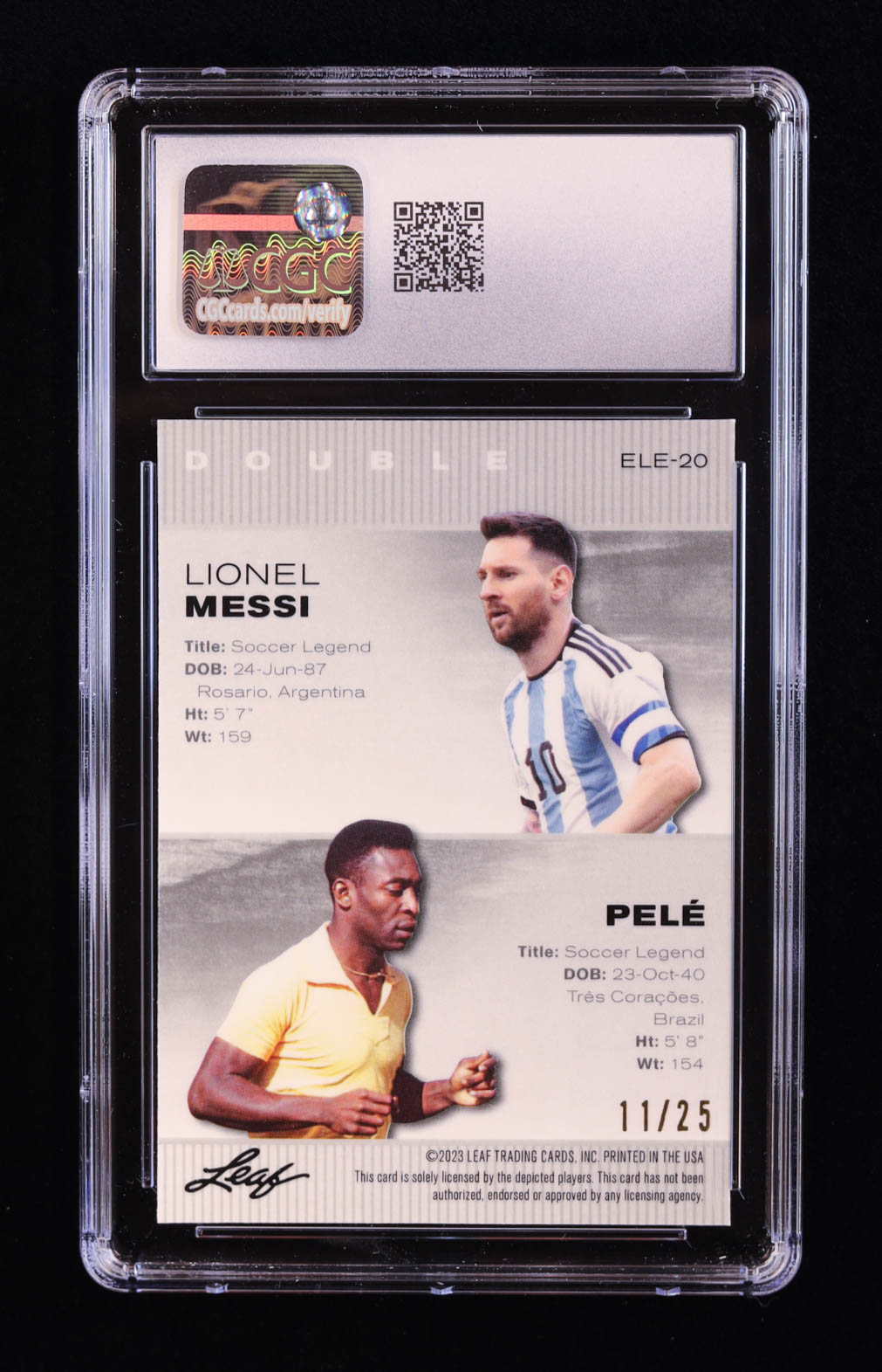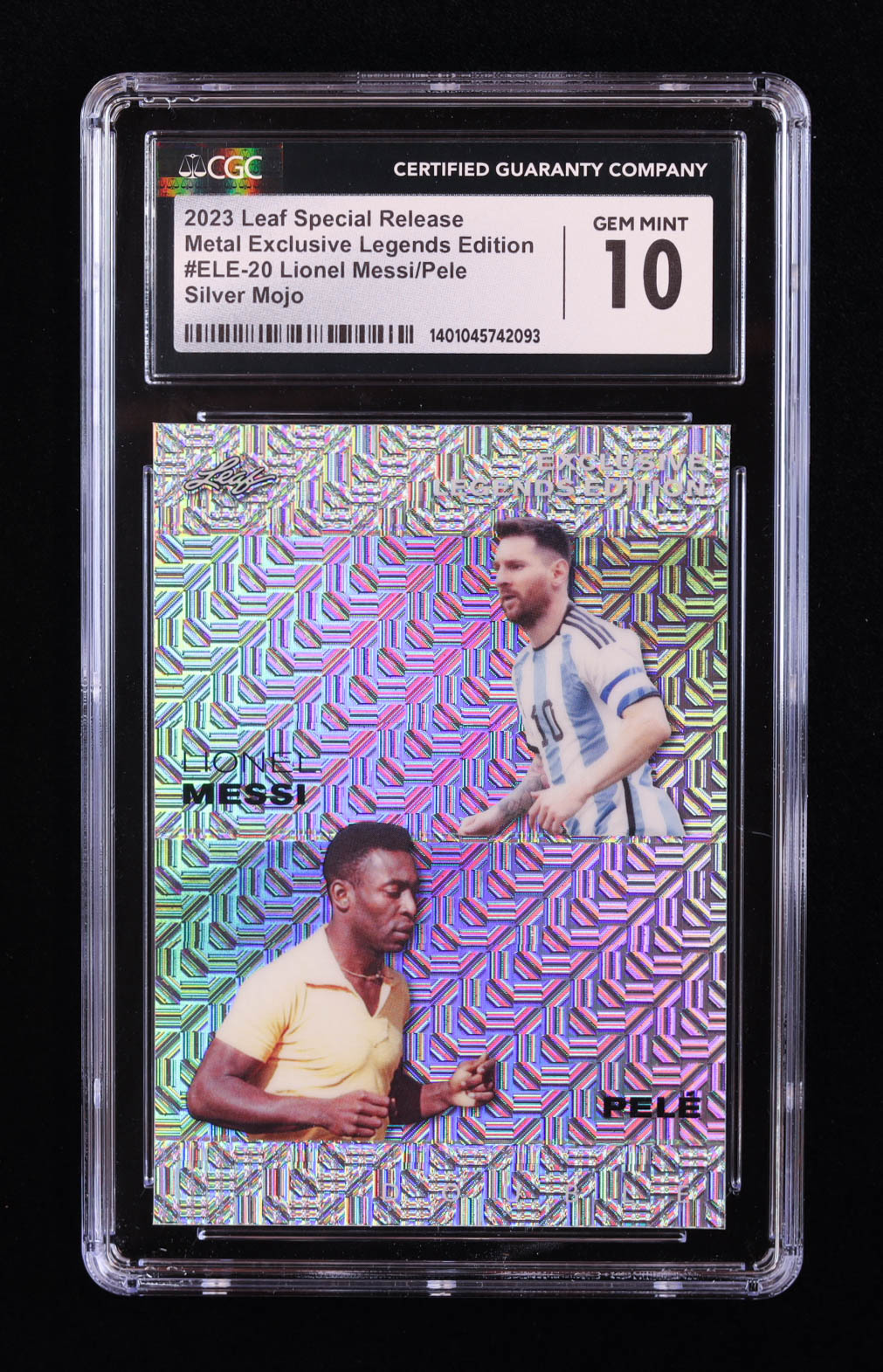 Lionel Messi / Pele 2023 Leaf Metal Special Release Exclusive Legends Edition Mojo Silver #ELE20 #11/25 (CGC 10)