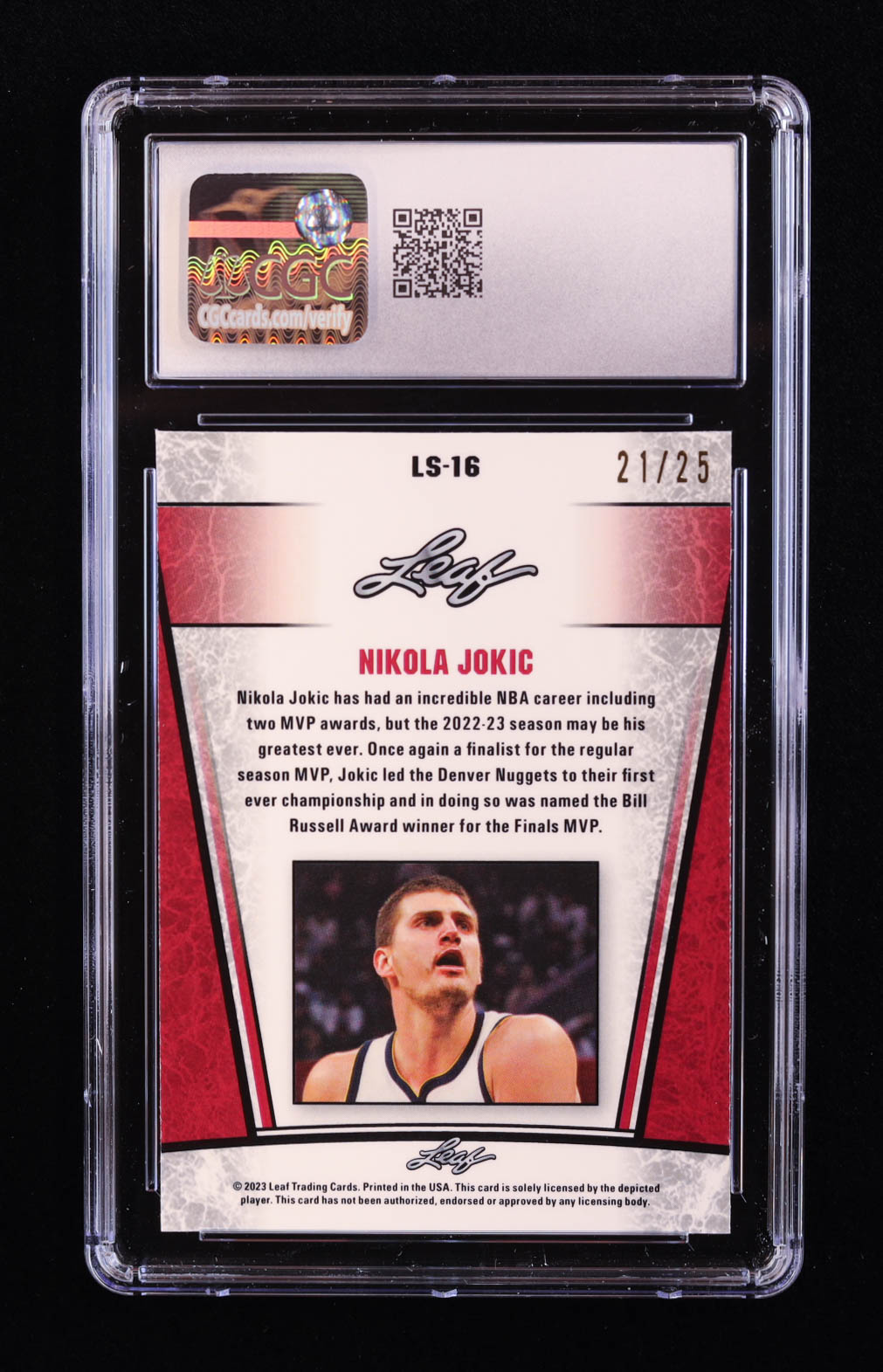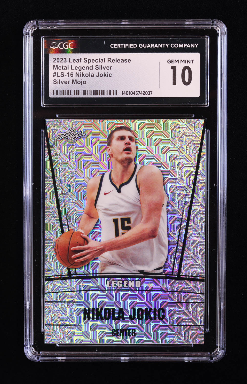Nikola Jokic 2023 Leaf Metal Special Release Legend Silver Mojo Silver #LS16 #21/25 (CGC 10)