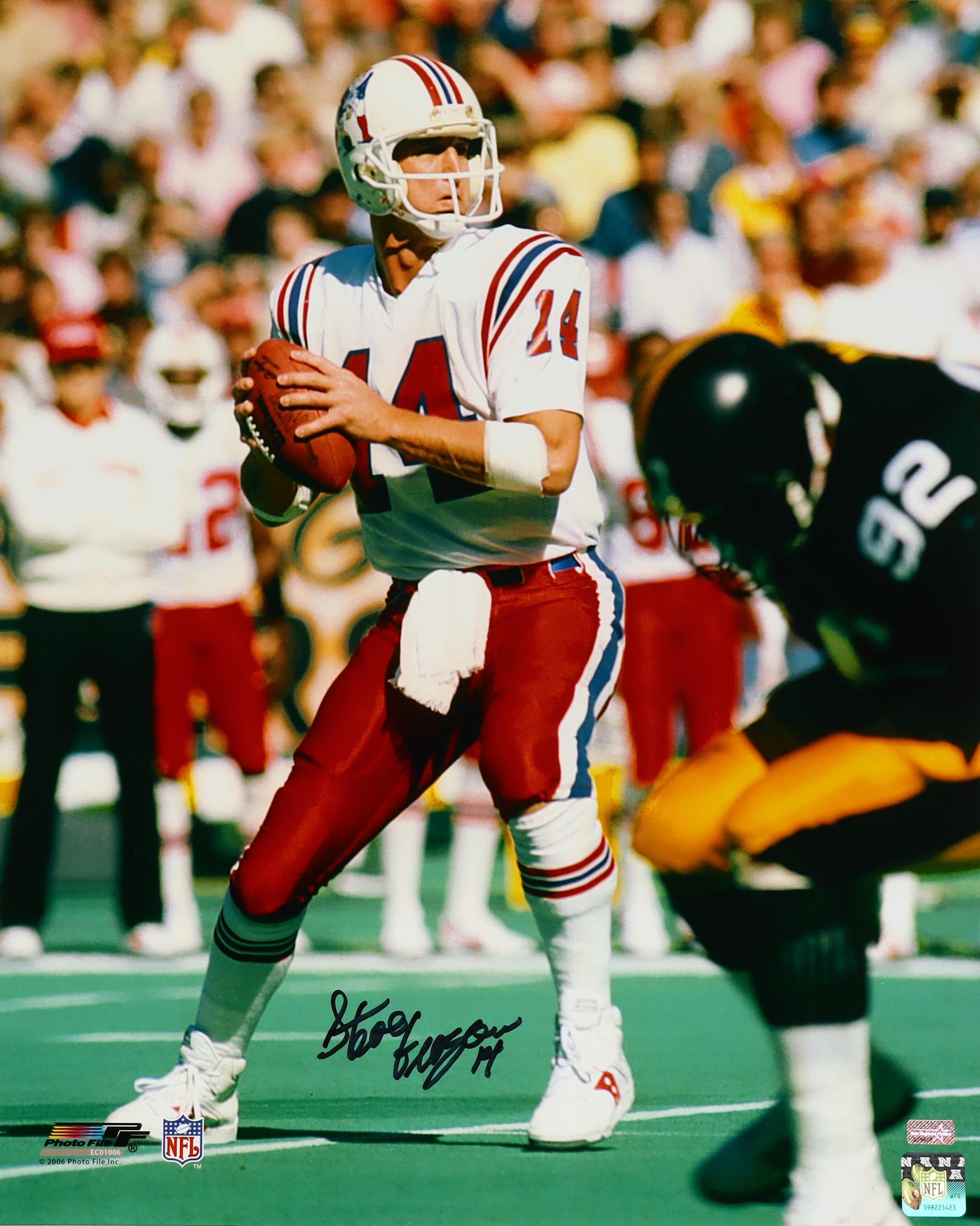 Photo measures 16" x 20" in size and has been hand-signed by Steve Grogan (New England Patriots).