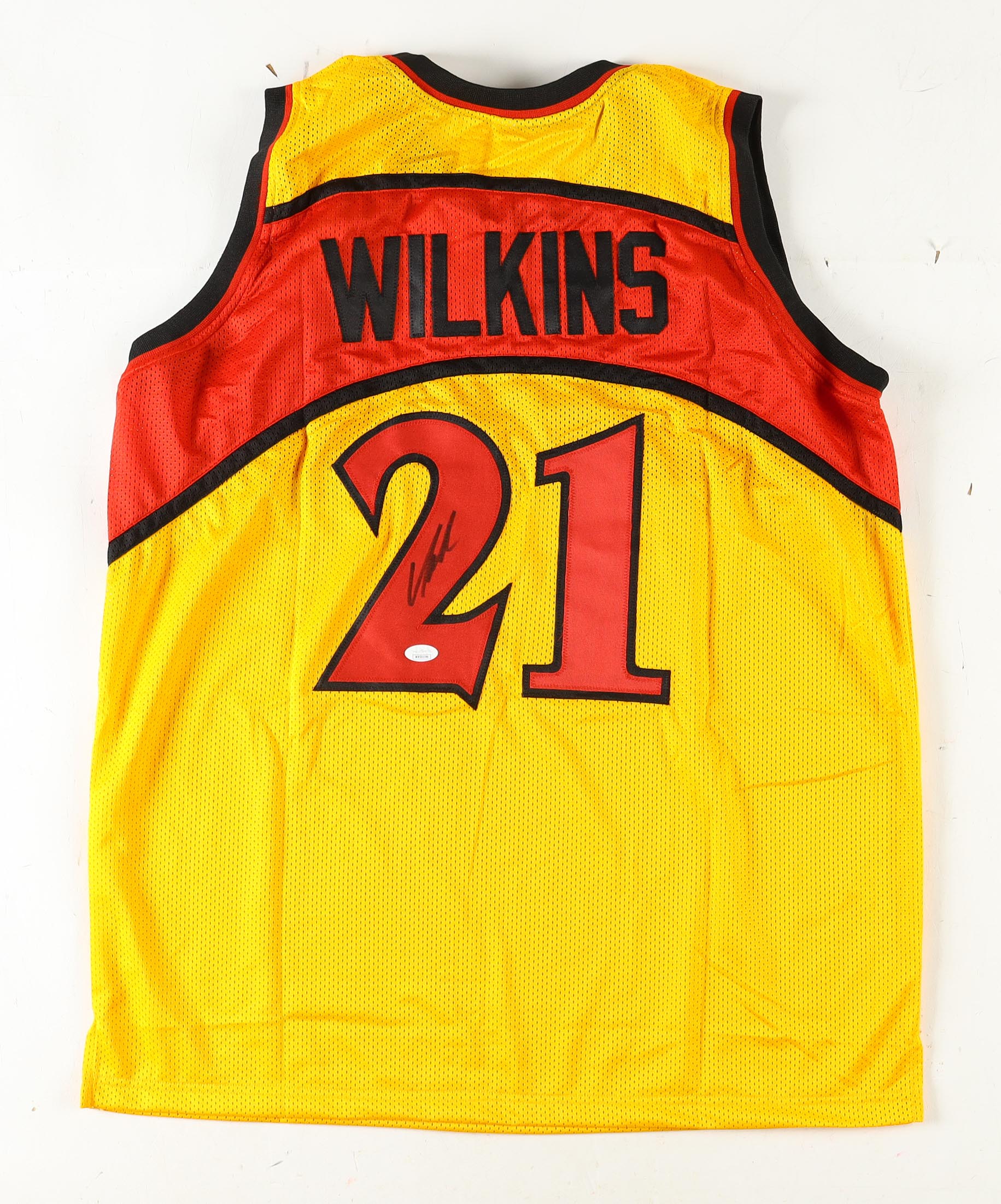 Custom jersey, everything sewn on, size XL. Hand-signed by Dominique Wilkins (HOF).