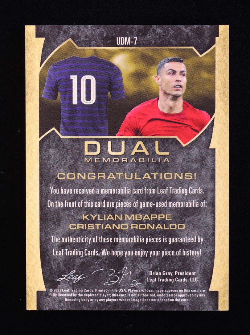 Kylian Mbappe / Cristiano Ronaldo 2023 Leaf Ultimate Soccer Dual Memorabilia Silver #UDM7 #27/30