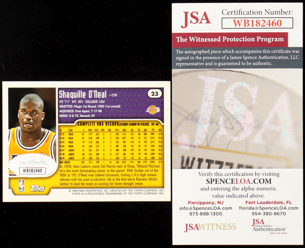 Shaquille O'Neal Signed 1999-00 Topps #23 (JSA)